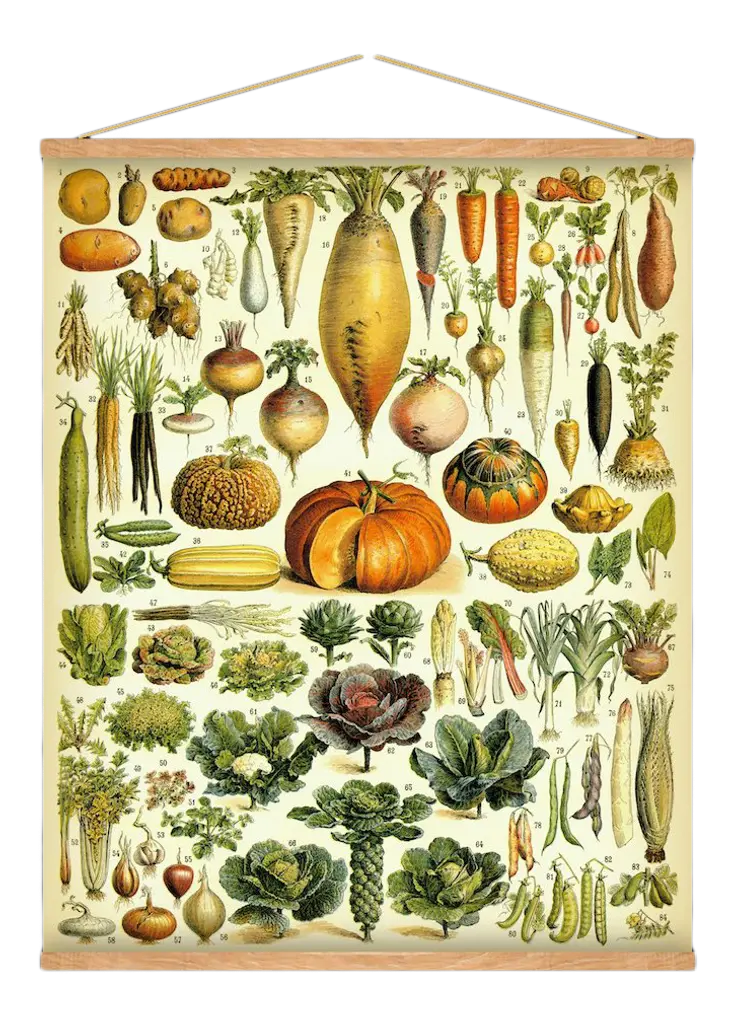 Vegetables; Peas In Pods, Raddish, Carrot, & Melon- Canvas Poster 20" X 30"