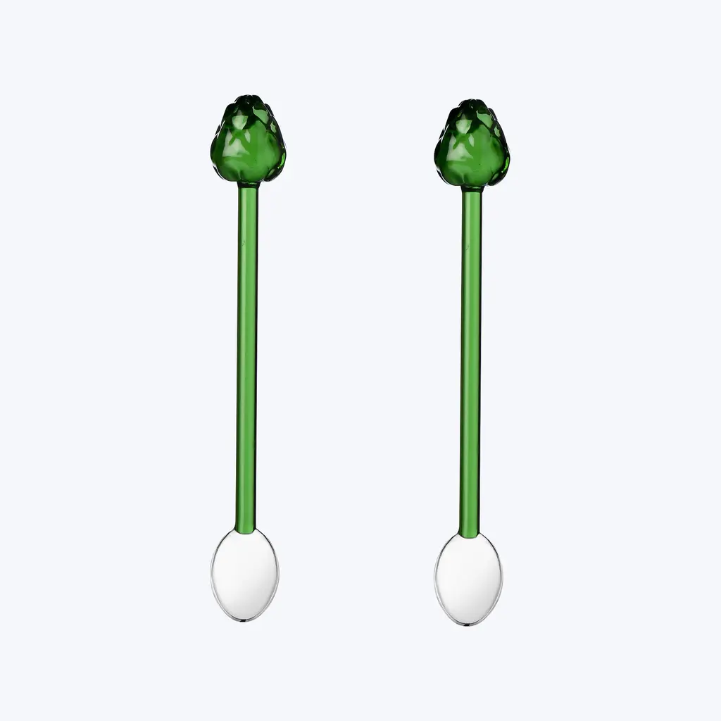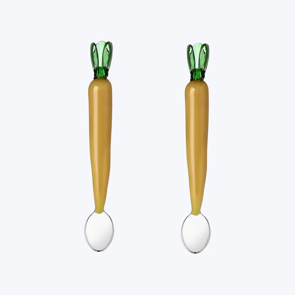 Discover the Vegetables Set of 2 Spoons by Ichendorf Milano. The work of Milanese designer Alessandra Baldereschi, these charming spoons make a playful addition to contemporary and modern kitchens. Handcrafted in borosilicate glass. Available in Artichoke, Carrot, and Tomato editions. Collect them all.