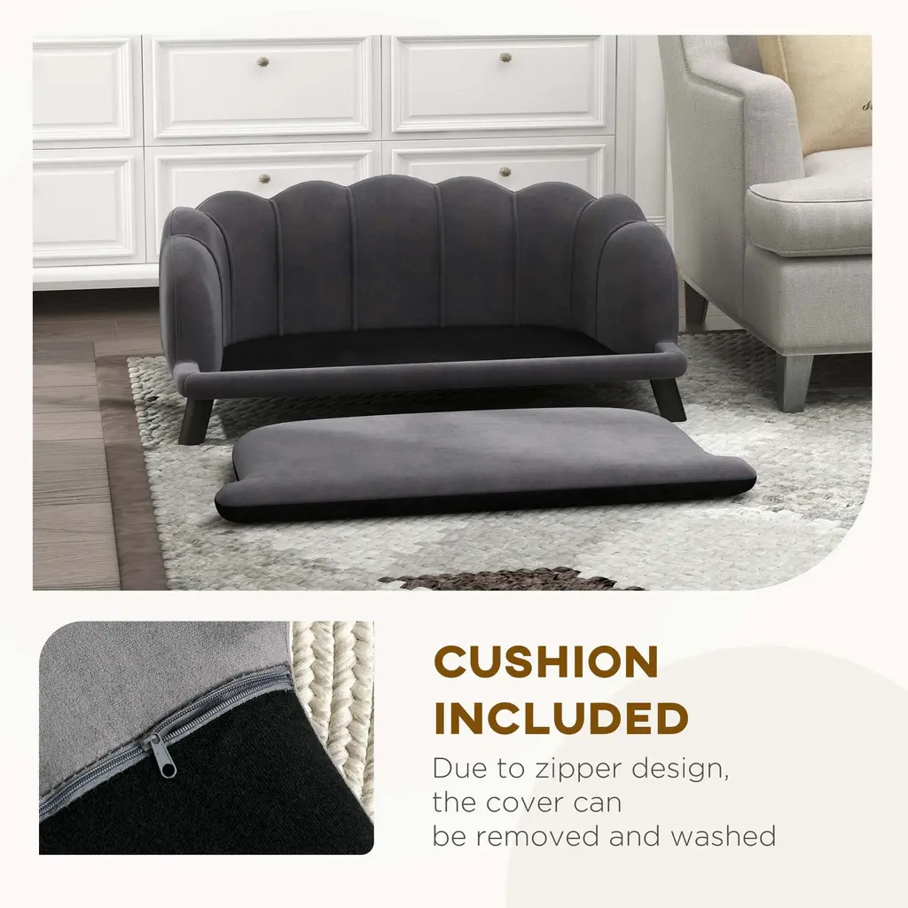 Velvet Large Dog Couch With Foam Cushioning - Grey