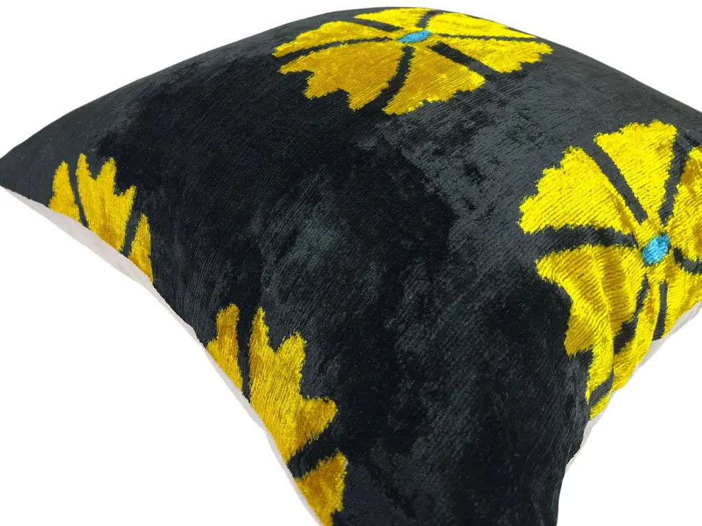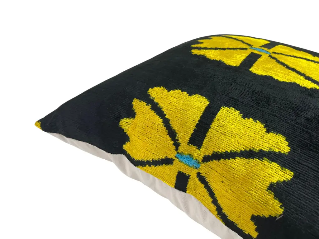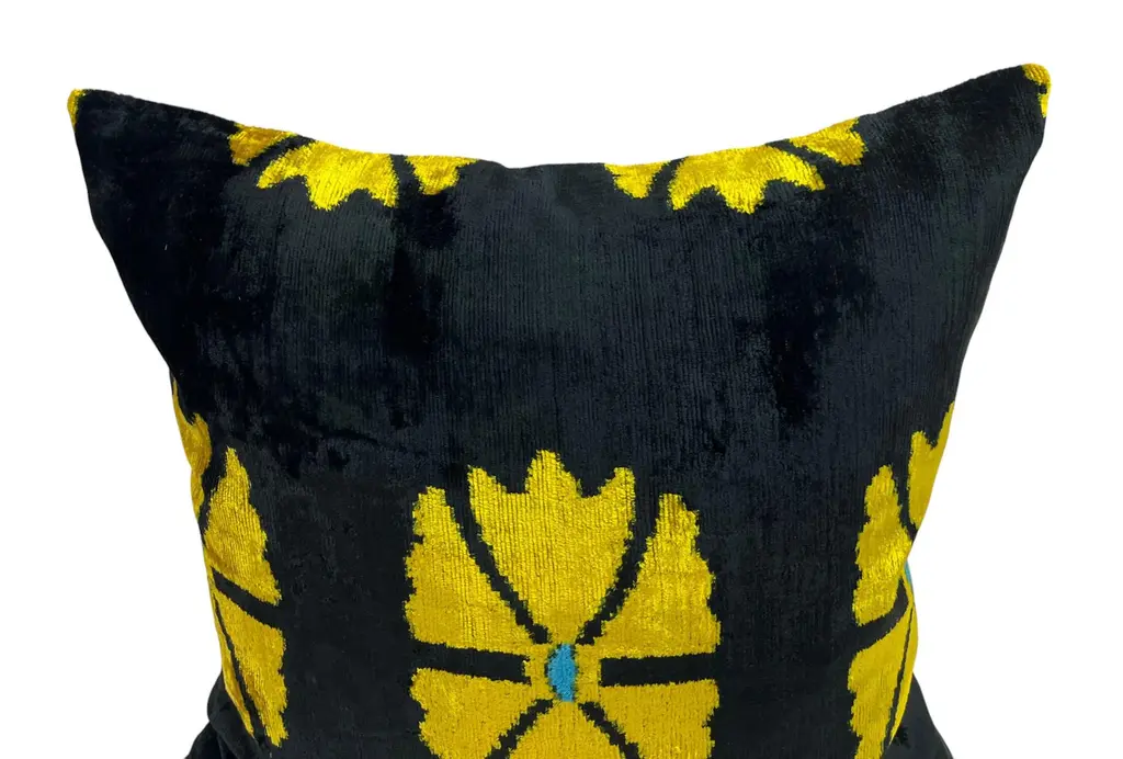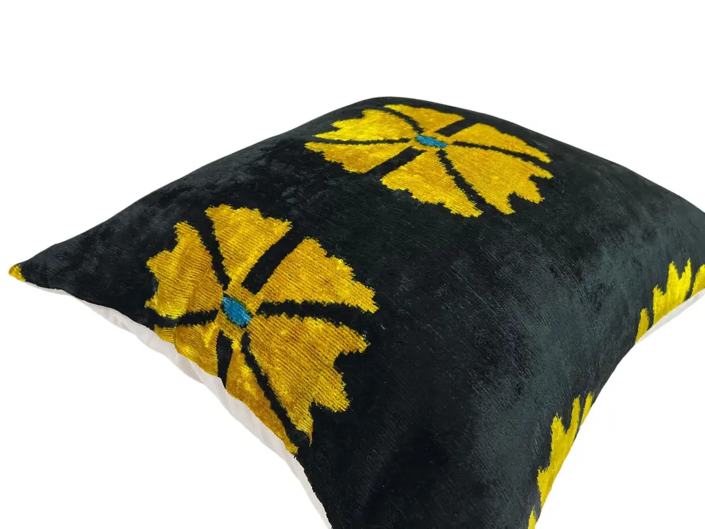 Handmade Velvet Silk IKAT cushion cover with flower design and multicolor. It can be a perfect gift for new homes. This pillow case features a luxurious silk velvet fabric with an ikat pattern, adding a touch of elegance and sophistication to any space. The unique weaving technique of ikat creates a striking, artistic design, while the softness of the silk velvet ensures both comfort and visual appeal. Perfect for accenting your living room, bedroom, or any area in need of a stylish, refined statement piece. Handmade Velvet Silk IKAT cushion cover with tribal rainbow design and multicolor. It can be a perfect gift for new house. This pillow case features a luxurious silk velvet fabric with an ikat pattern, adding a touch of elegance and sophistication to any space. The unique weaving technique of ikat creates a striking, artistic design, while the softness of the silk velvet ensures both comfort and visual appeal. Perfect for accenting your living room, bedroom, or any area in need of a stylish, refined statement piece. Size: 20" 20" Inc - ( 50x50 cm ) Care: Dry Cleaning Cushion insert is not included