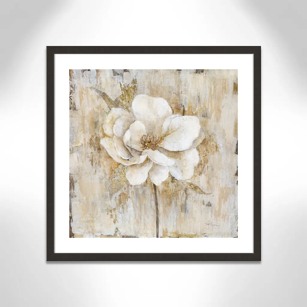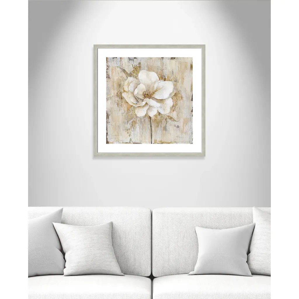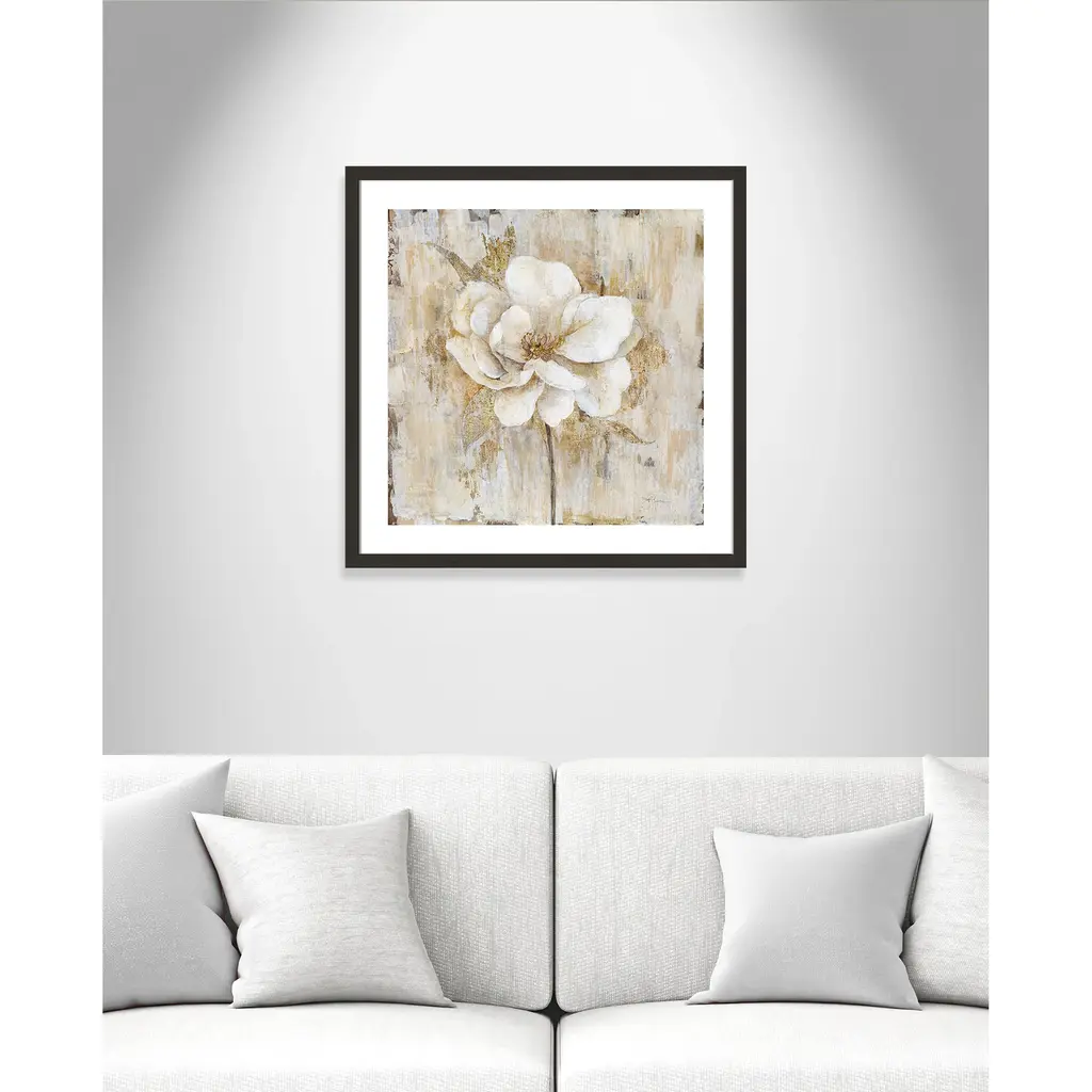 Add a sophisticated and elegant quality to your home décor with 'Venetian Gold Botanical II', a traditional floral image composed of neutral tones beautifully blended with vivid shades of gold. Finished in a modern frame made of PS materials, this is the perfect addition to your walls. Archival fine art giclée print on acid-free and lignin-free 100% cotton rag paper; image includes a bright white self-matting border Printed with gallery-quality inks using the finest giclée print technology for unsurpassed color gamut and clarity Lightweight and finished under shatter-resistant acrylic; hanging hardware attached for easy and secure installation Handcrafted in the USA and ships with a Certificate of Authenticity Lightweight and finished under shatter-resistant acrylic