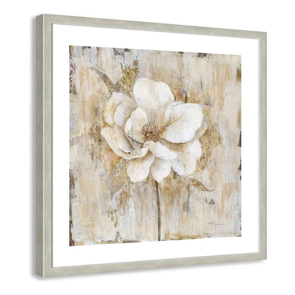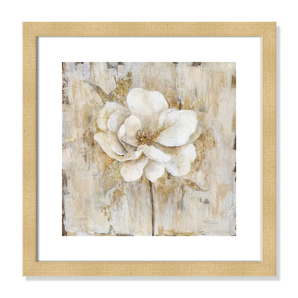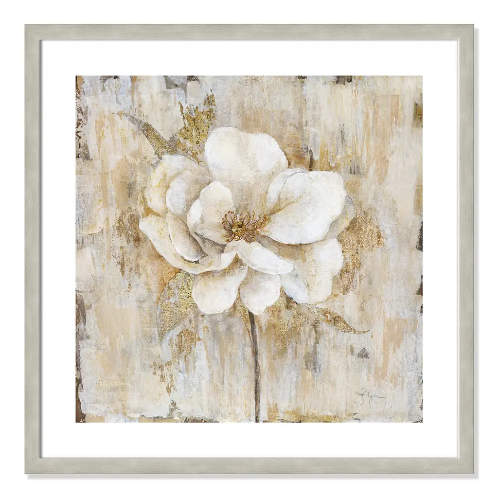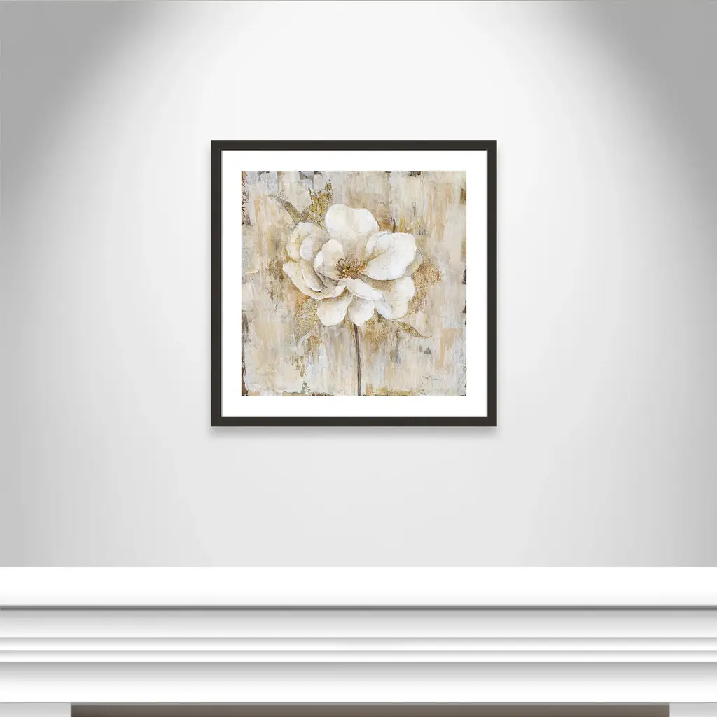 Add a sophisticated and elegant quality to your home décor with 'Venetian Gold Botanical II', a traditional floral image composed of neutral tones beautifully blended with vivid shades of gold. Finished in a modern frame made of PS materials, this is the perfect addition to your walls. Archival fine art giclée print on acid-free and lignin-free 100% cotton rag paper; image includes a bright white self-matting border Printed with gallery-quality inks using the finest giclée print technology for unsurpassed color gamut and clarity Lightweight and finished under shatter-resistant acrylic; hanging hardware attached for easy and secure installation Handcrafted in the USA and ships with a Certificate of Authenticity Lightweight and finished under shatter-resistant acrylic