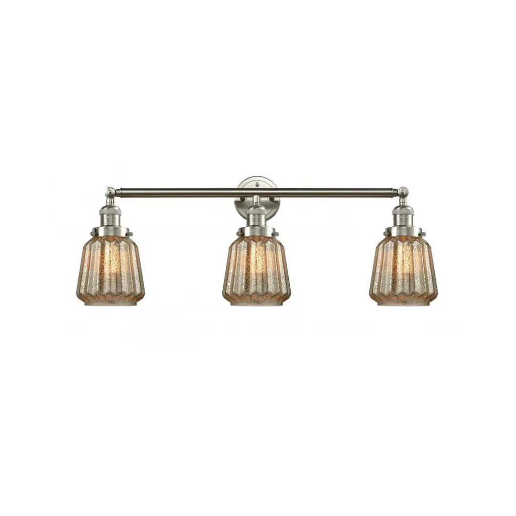 Veneto Luce - Rondo 3-Light LED Bath Bar - Cylinder w/ Rippled Rim Shade - White Frosted - Polished Chrome - Dedicated LED