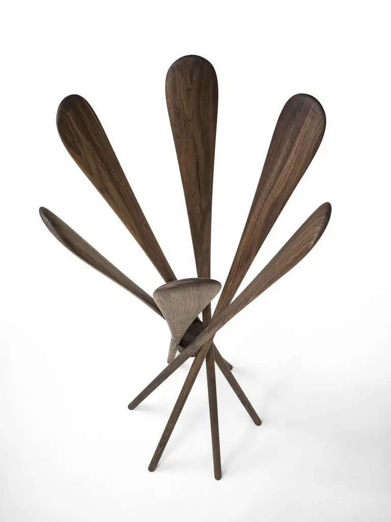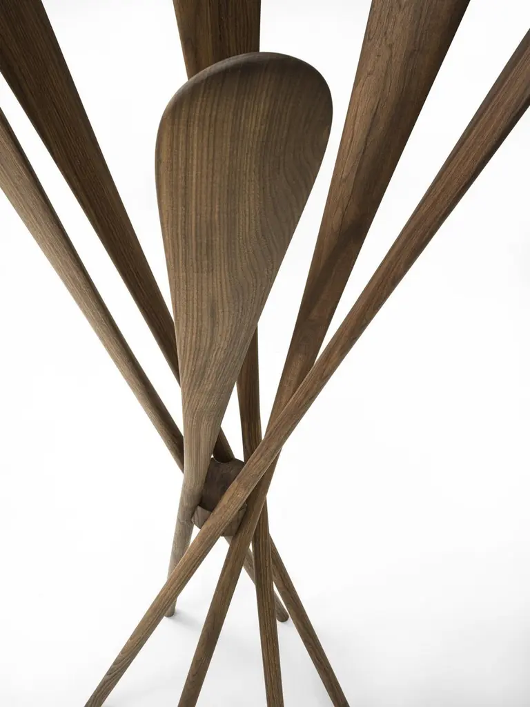 Coat hanger made entirely of solid wood, it takes inspiration from the oars of Venice gondolas, which are dynamically joined in the center through a cross support also in solid wood.Available in walnut and oak.Made in Italy.