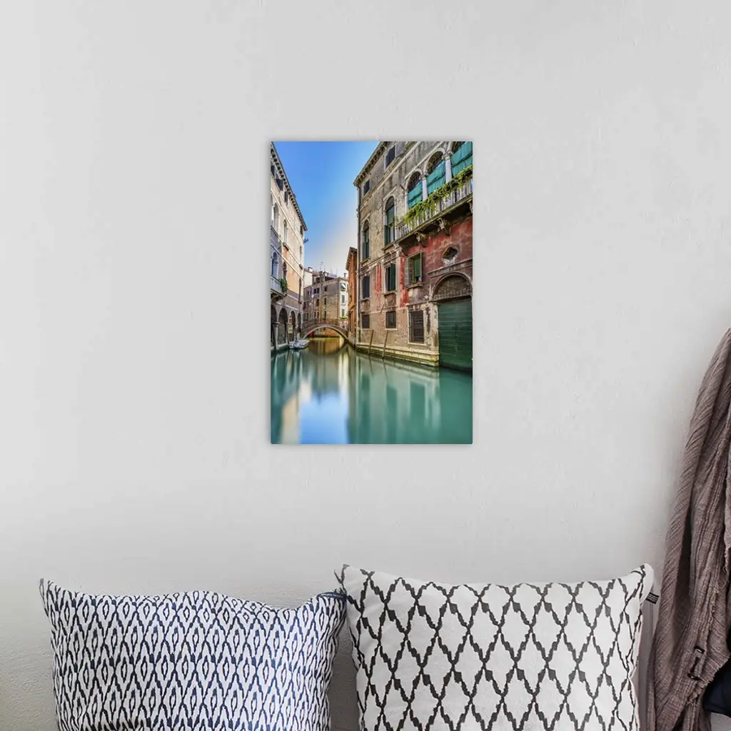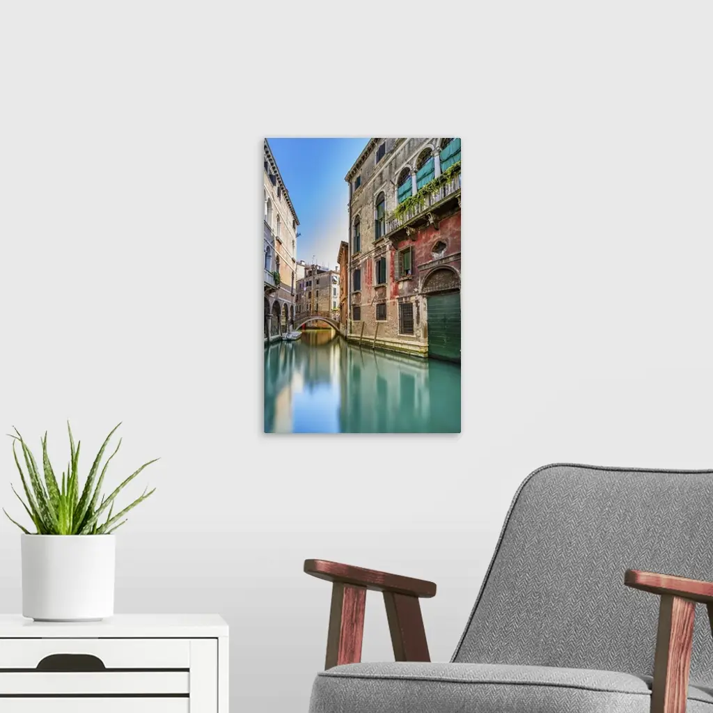 Venice cityscape, narrow water canal, bridge and traditional buildings. Italy, Europe.