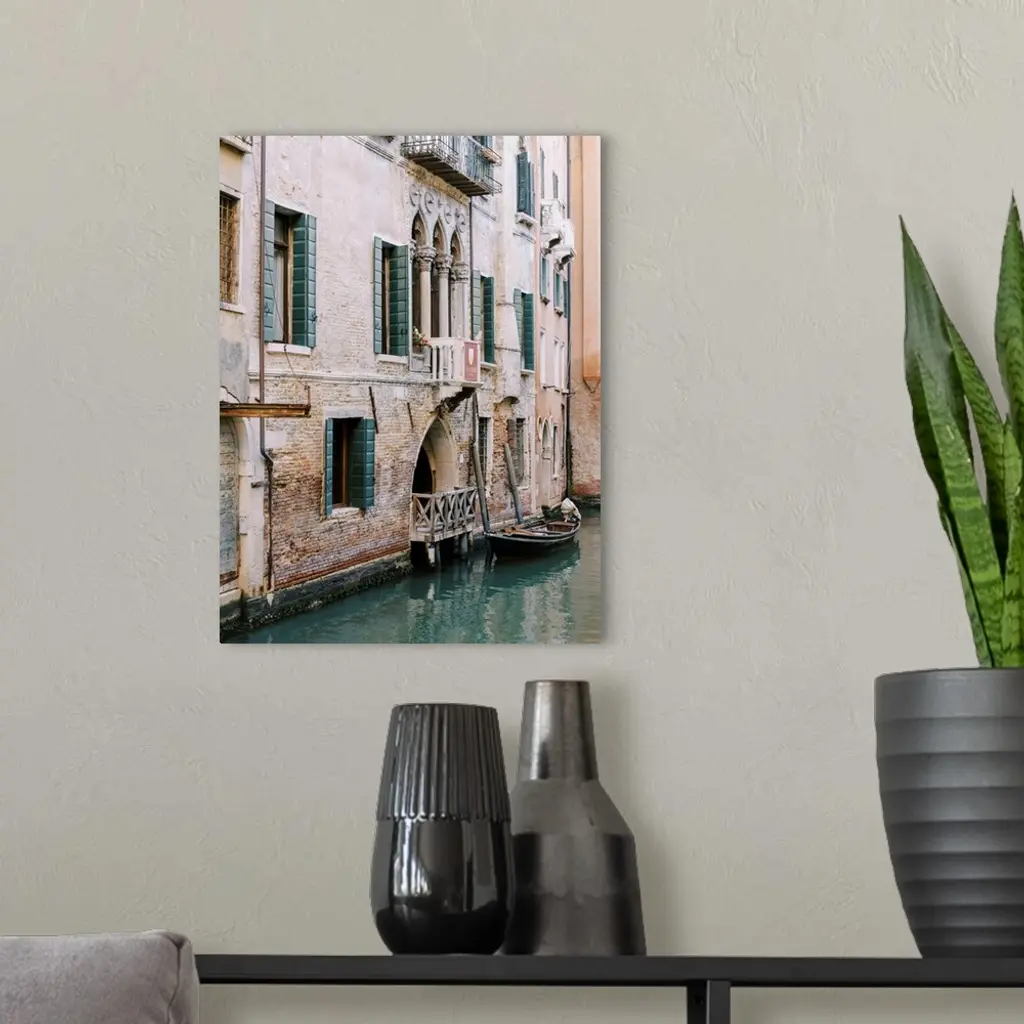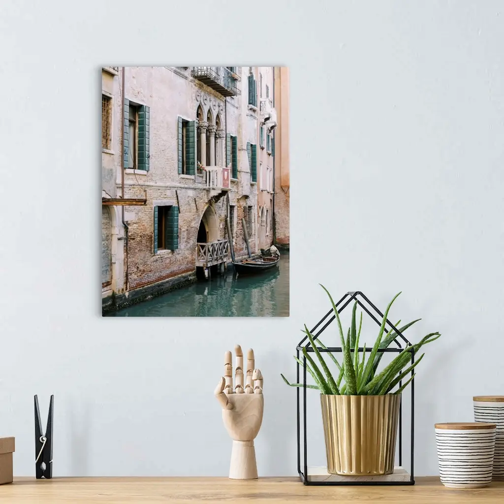 A photograph of the facade of a house on a canal, Venice, Italy.