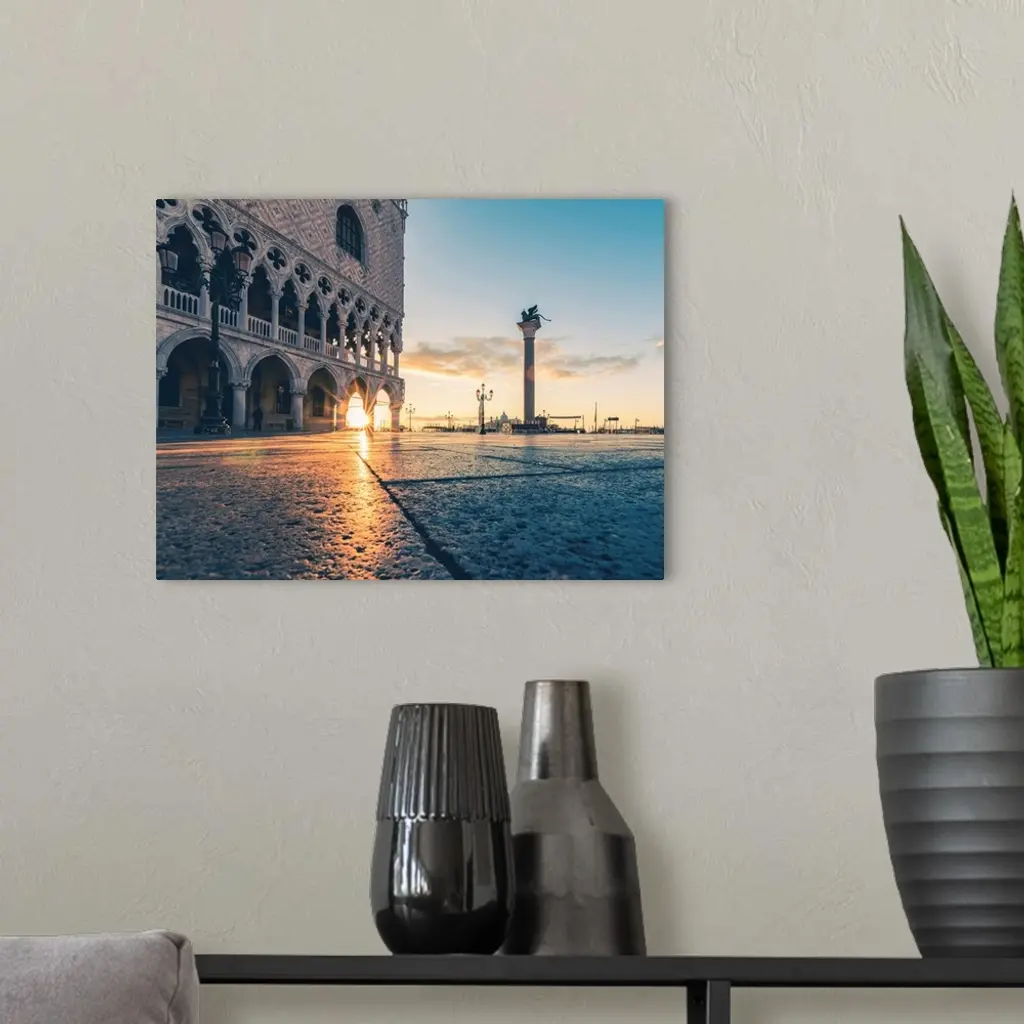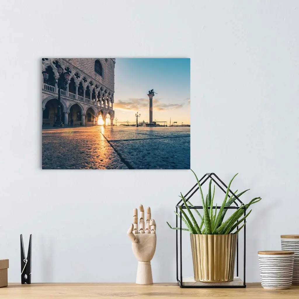 Venice, Italy, Sunrise Through The Arches Of Doge's Palace In Piazzetta San Marco