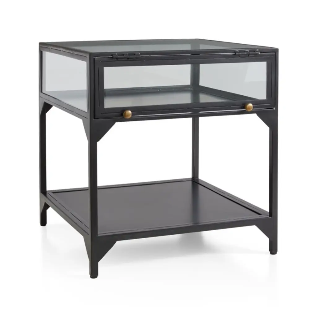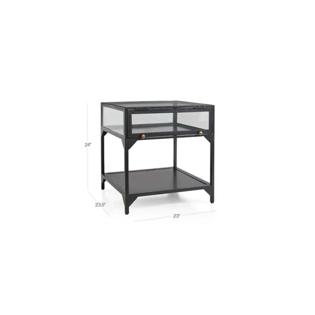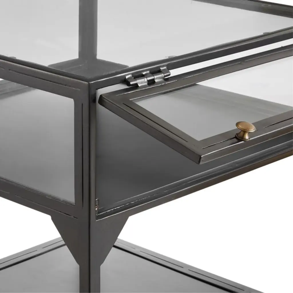 Named for the Spanish word for "window," Ventana tops a dark zinc-colored iron frame table with a paned glass display case to shed light on curiosities and collectibles.