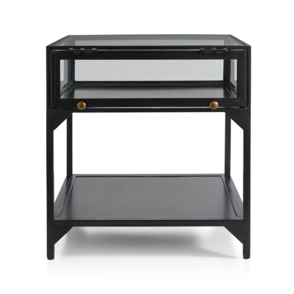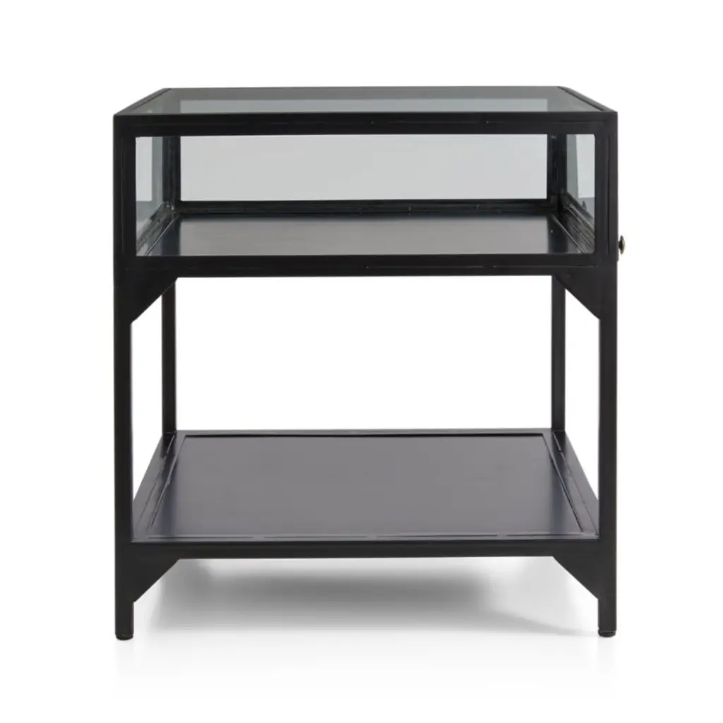 Ventana Black Glass Display End Table With Shelf