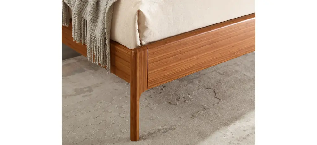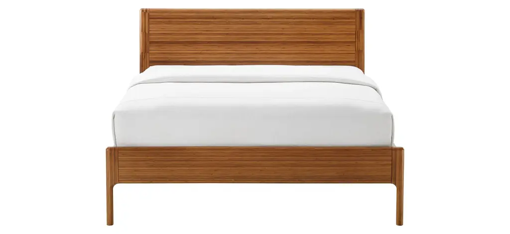 The quiet elegance of the Ventura Platform Bed is all about celebrating the beautiful grain of solid Amber bamboo. The modern style and simple clean lines of the Ventura platform bed show off the rich variety of Amber's colors. The expert construction features a craftsman-built frame in solid sustainable bamboo, and the smooth detail where the headboard and footboard meet the frame is especially stunning. If you've been looking for a modern and elegant bed, this is the one. Sustainable and earth friendly, Amber is not a surface stain, the color is the result of an innovative new process using earth friendly heat and steam, to entirely transform the solid bamboo material into Amber's deep color. The Ventura platform bed is designed for use with a mattress only, which is supported with a solid bamboo European slat system, eliminating the need for a box spring, and providing constant ventilation for your mattress.