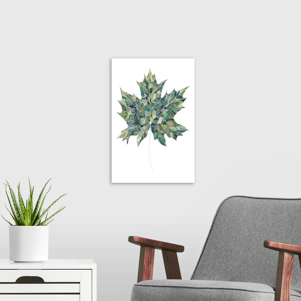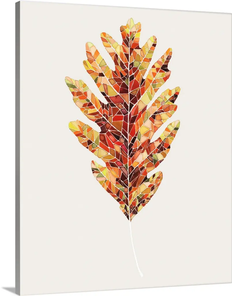 A green leaf with colorful sections resembling stained glass.
