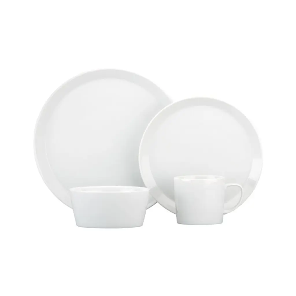 Clean, simple and beautifully balanced, this white porcelain dinnerware designed by Martin Hunt with flared rims and straight sides is the ideal blank canvas for your culinary creations.