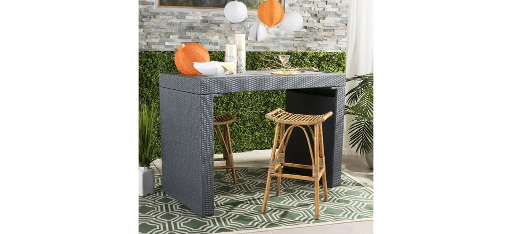 Inspired by daydreams of tropical breezes, this Vernice rattan bar stool transforms any interior into an exotic oasis. Crafted with natural mindi wood, its texture and honey brown finish bring depth and dimension to any open plan dining room. An instant vacation.
