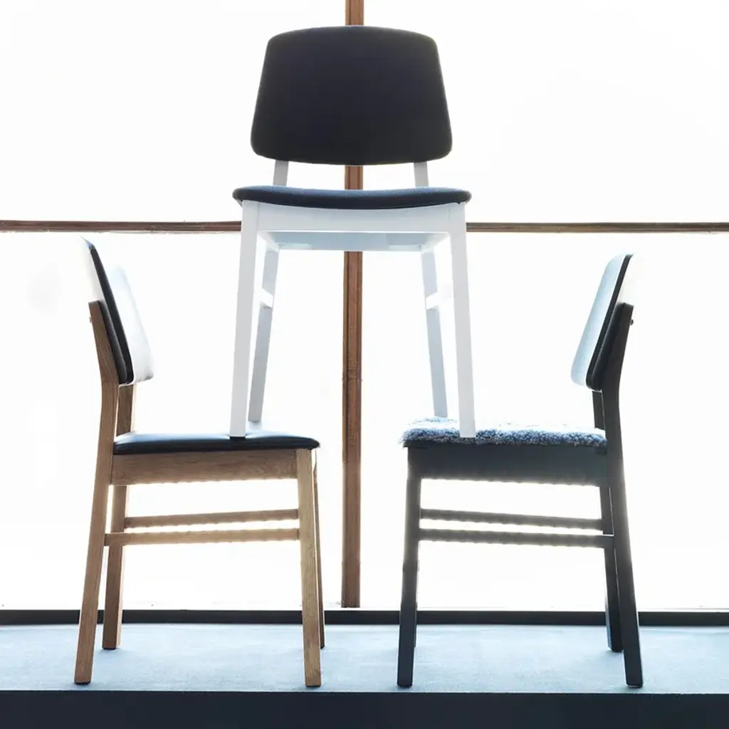 Verona is a chair in solid oak, ash or birch. It is available in the version with integrated cushion and with padded back. Different finishes and colors available.
