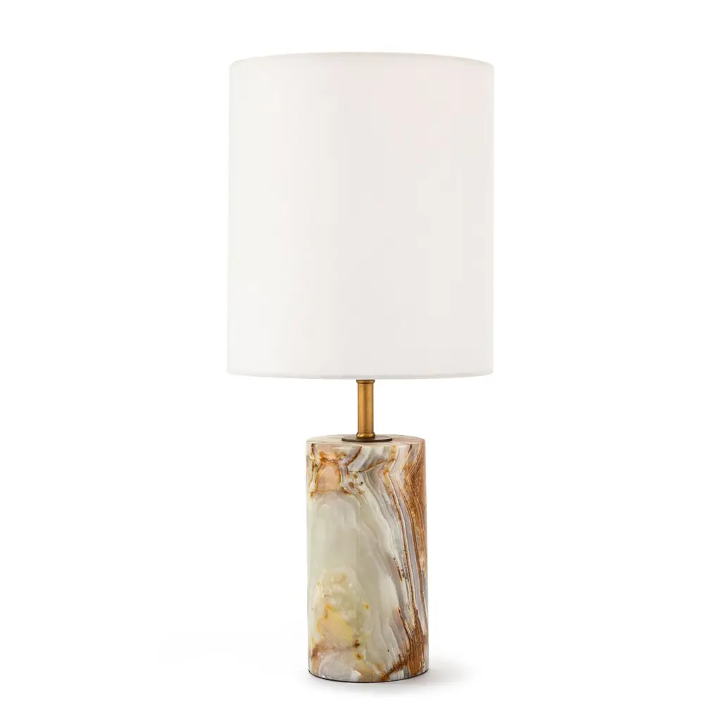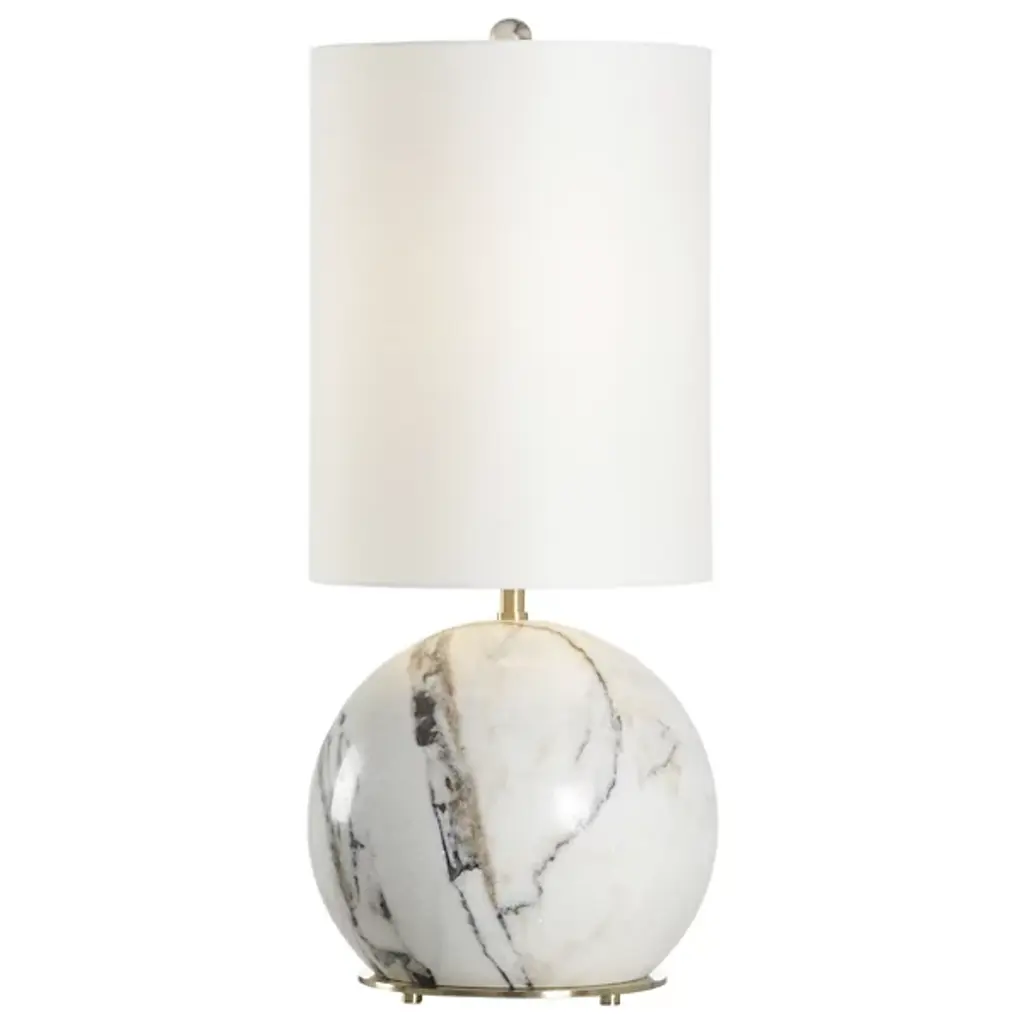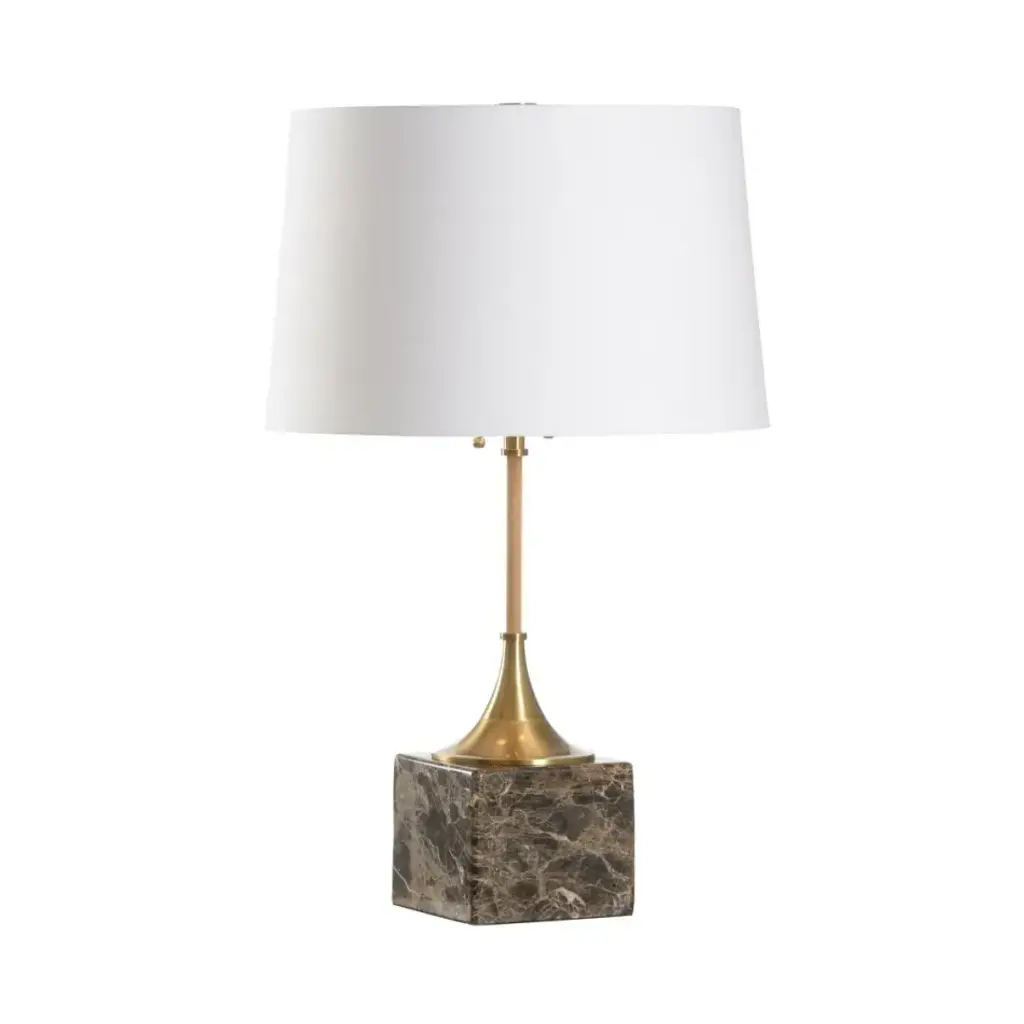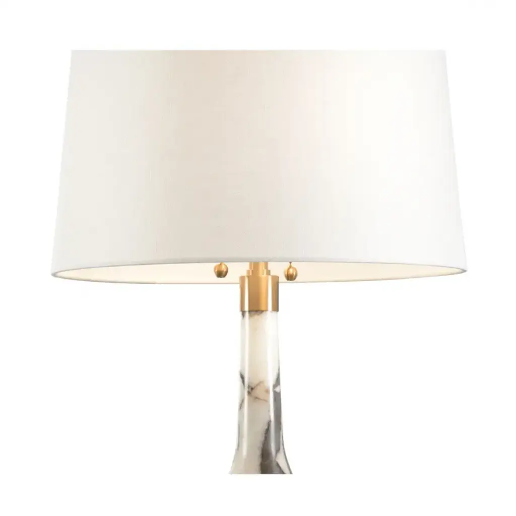 Dress up the aesthetic in a rustic or contemporary home or office. Verona lamp is a versatile design with a modern edge. A stunning base of sculpted natural calacatta marble shines under the off white linen shade. Two lights with pull chain sockets provide ample lighting for any living space. Color and veining variations may occur.