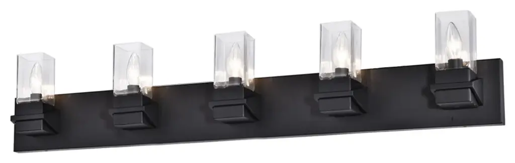 Dainolite Contemporary Veronica Vanity in Painted Matte Black Metal for the Wall with 5 bulb, E12 socket base 60 Watts max Dimmable and UL Approved for Damp Location with a 1 Year warranty. Great for Bathroom, Powder Room, Spa rooms and Commercial use. Features include, Suited for Bathrooms and Powder Rooms, Fixture will accommodate a variety of decor styles Easy Assembly and Installation