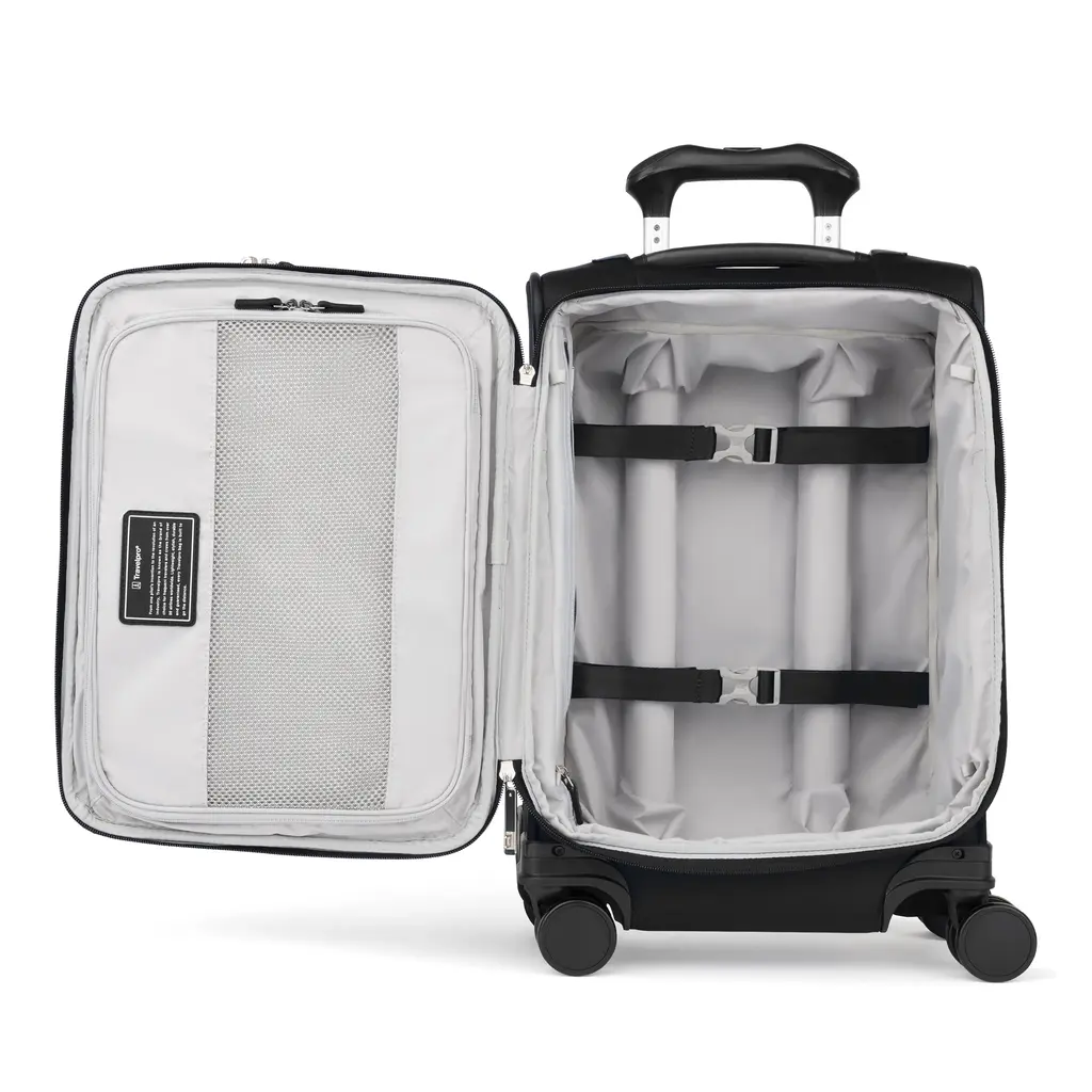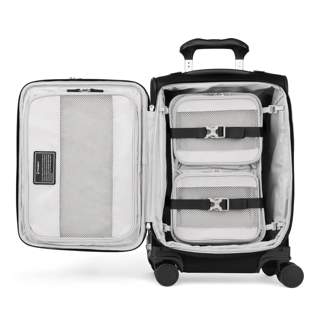 Ultimate packing versatility is yours with the durable Travelpro Versapack+ Luggage Collection. Designed for today and built to last with high-density ballistic nylon fabric with DuraGuard® coating to provide the ultimate stain and abrasion resistance. The water-resistant interior lining is made from 100% post-consumer recycled plastic bottles and all products are covered by a Built for a Lifetime Limited Warranty with Travelpro's 3-Year Trusted Companion Promise, which covers damage caused by an airline or other common carrier.