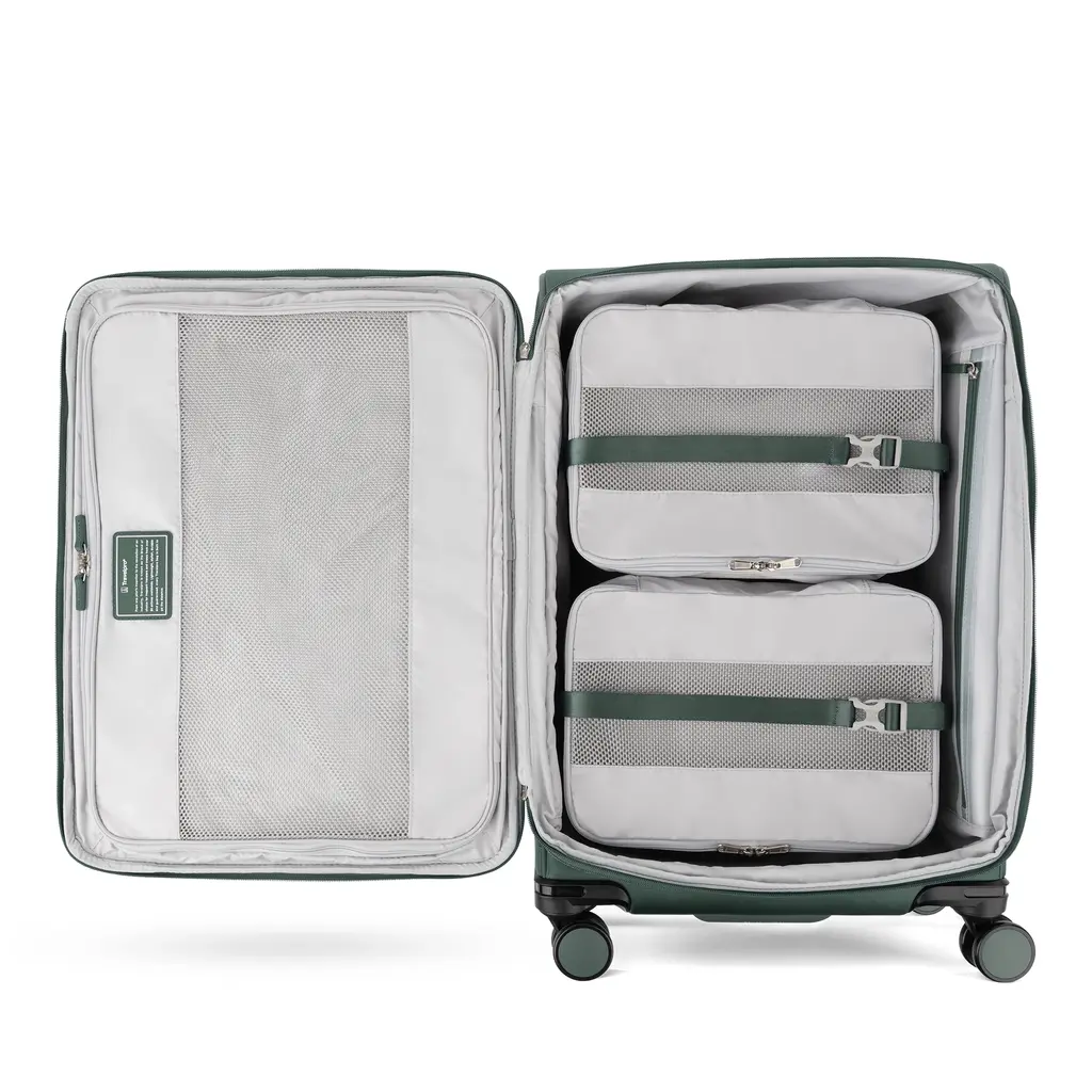 Ultimate packing versatility is yours with the durable Travelpro Versapack+ Luggage Collection. Designed for today and built to last with high-density ballistic nylon fabric with DuraGuard® coating to provide the ultimate stain and abrasion resistance. The water-resistant interior lining is made from 100% post-consumer recycled plastic bottles and all products are covered by a Built for a Lifetime Limited Warranty with Travelpro's 3-Year Trusted Companion Promise, which covers damage caused by an airline or other common carrier.