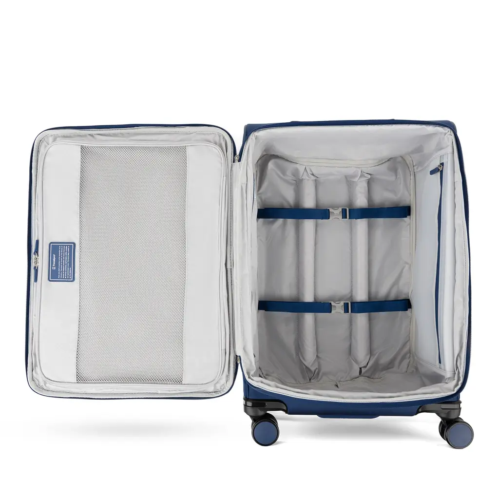 Ultimate packing versatility is yours with the durable Travelpro Versapack+ Luggage Collection. Designed for today and built to last with high-density ballistic nylon fabric with DuraGuard® coating to provide the ultimate stain and abrasion resistance. The water-resistant interior lining is made from 100% post-consumer recycled plastic bottles and all products are covered by a Built for a Lifetime Limited Warranty with Travelpro's 3-Year Trusted Companion Promise, which covers damage caused by an airline or other common carrier.
