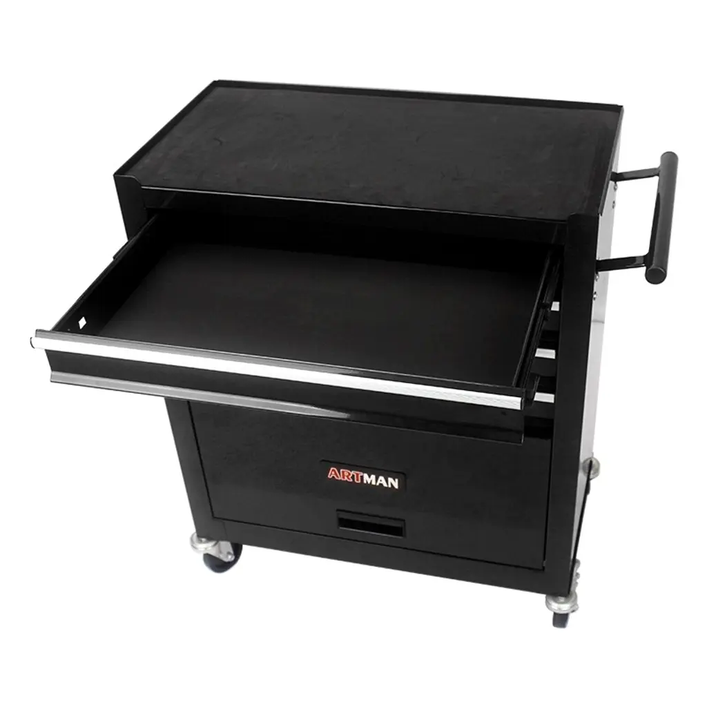 This tool cart is a game-changer for your workspace. It offers seamless functionality and convenience. The one-side pull handle ensures effortless maneuverability, allowing you to move it around with ease. The drawers are designed to accommodate a wide range of items, keeping your tools and essentials organized. The wheels, with their locking mechanisms, provide stability when needed. The robust construction guarantees durability, making it a reliable companion for all your tasks. It's not just a tool cart; it's a solution to enhance your productivity and workspace efficiency.