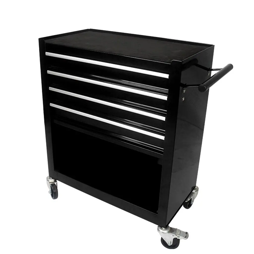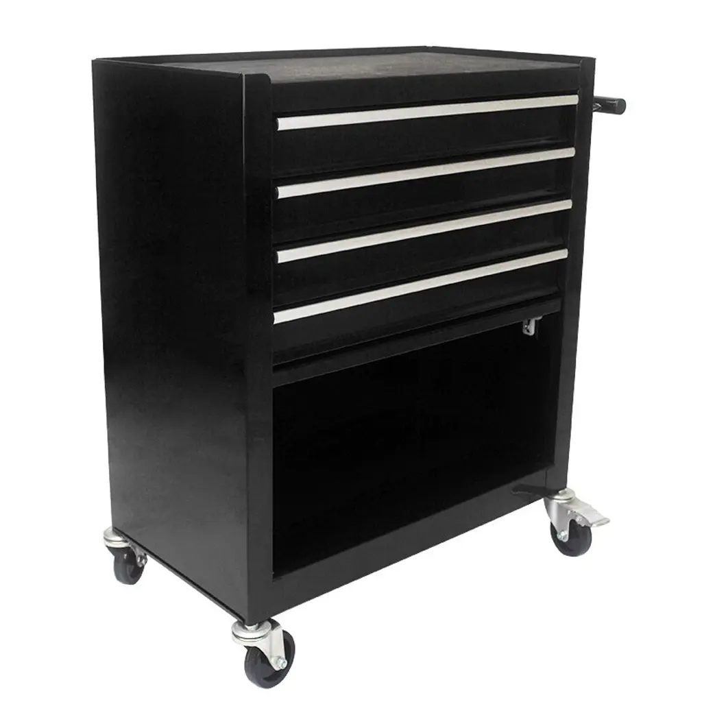 Versatile 4-Drawer Tool Cart With Wheels For Enhanced Workspace Organization - Black
