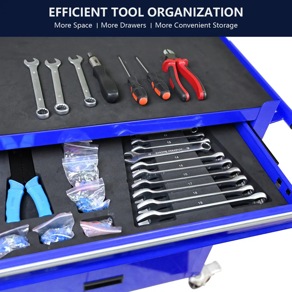 This tool cart is a game-changer for your workspace. It offers seamless functionality and convenience. The one-side pull handle ensures effortless maneuverability, allowing you to move it around with ease. The drawers are designed to accommodate a wide range of items, keeping your tools and essentials organized. The wheels, with their locking mechanisms, provide stability when needed. The robust construction guarantees durability, making it a reliable companion for all your tasks. It's not just a tool cart; it's a solution to enhance your productivity and workspace efficiency.