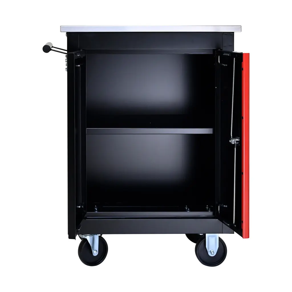 This tool cart is a game-changer for your workspace. It's crafted with precision and durability in mind. The smooth stainless steel surface ensures easy cleaning and long-lasting performance. The one-side pull handle and key locking system offer convenience and security. The dividers allow for customizable storage, making organization a breeze. With its high-quality construction and thoughtful design, it's the ideal companion for all your tool storage needs, enhancing your productivity and workspace efficiency.