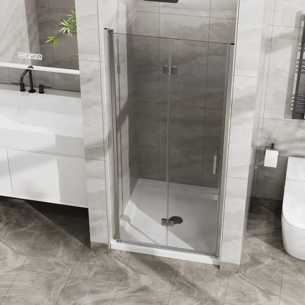 Versatile Foldable Shower Door Combo With Advanced Sealing And Durable Materials - Silver And White
