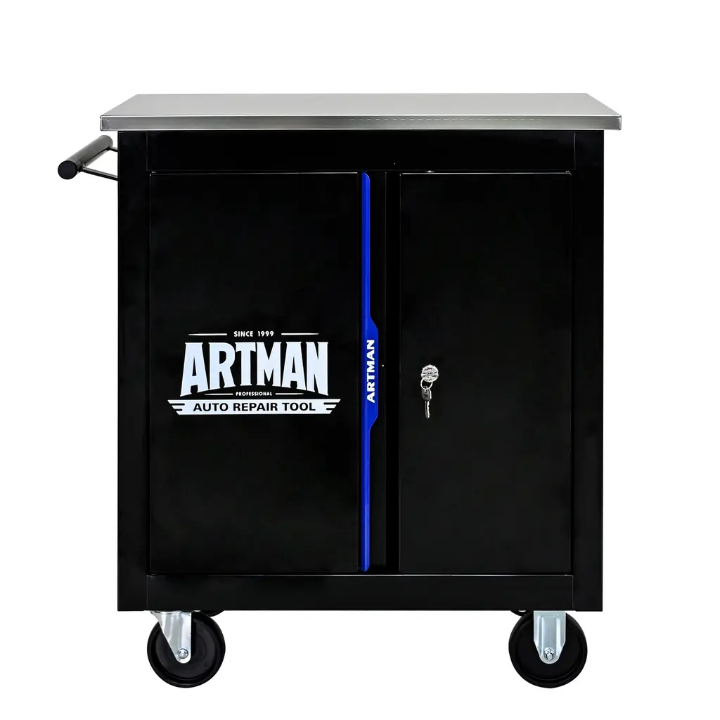This tool car is a remarkable addition to any auto repair workshop or storage area. It offers a secure and organized solution for your tools and equipment. The lockable double doors ensure the safety of your valuable items. The multi-functional design allows for efficient storage and easy access. The smooth surface and sturdy construction guarantee durability and long-term use. It is a practical choice that combines functionality and reliability, making your work or storage tasks much more convenient and efficient.