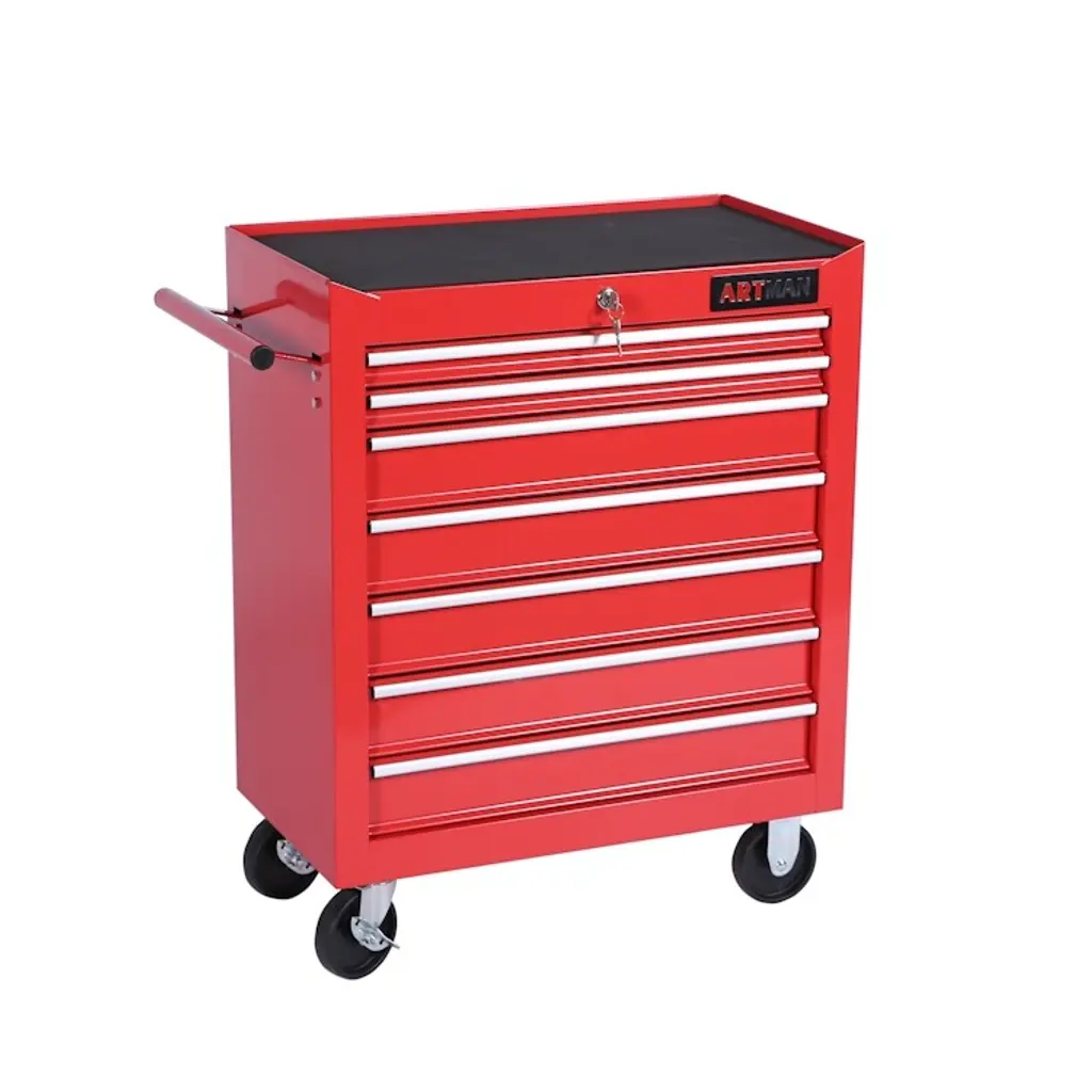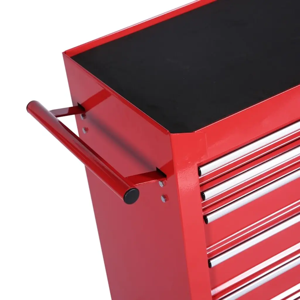 This tool cart is a game-changer for your workspace. It offers seamless mobility and exceptional storage capabilities. The drawers are designed to hold a wide range of items, from tools to essential supplies. The handle ensures effortless pushing and pulling, allowing you to move it wherever needed. The locking mechanism provides added security for your valuable tools and equipment. With its robust construction, it's built to last and withstand heavy use. It's a reliable companion that simplifies your work and keeps everything organized.