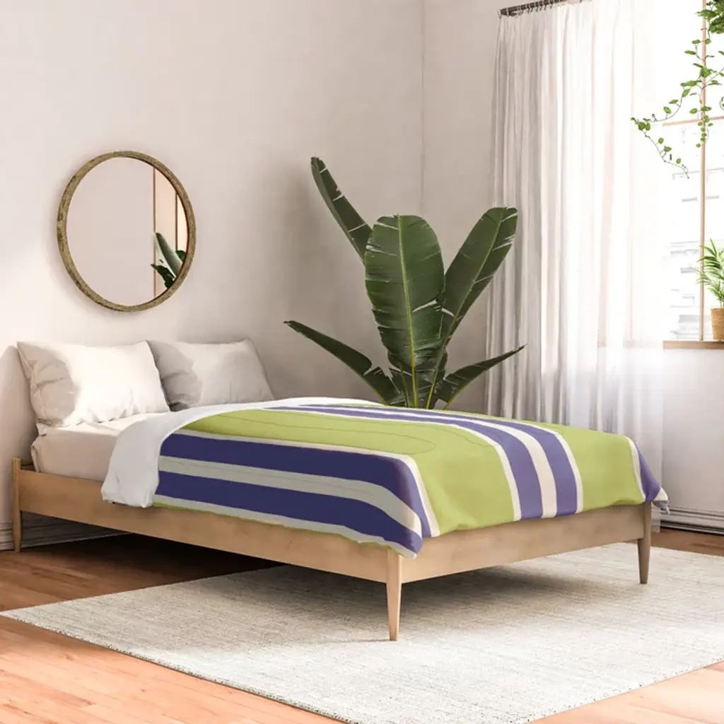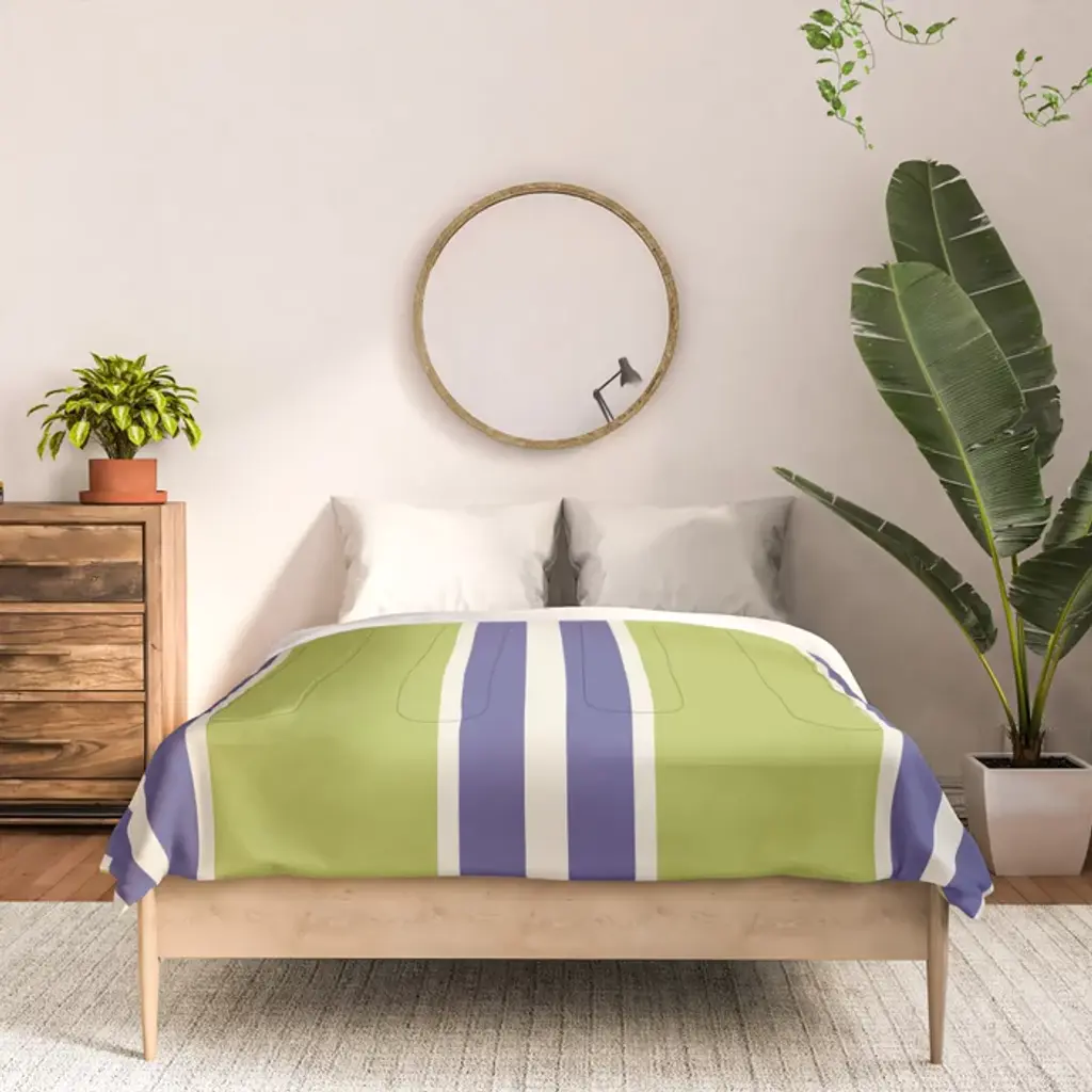 Vertical Stripes Chartreuse And Blue Comforter