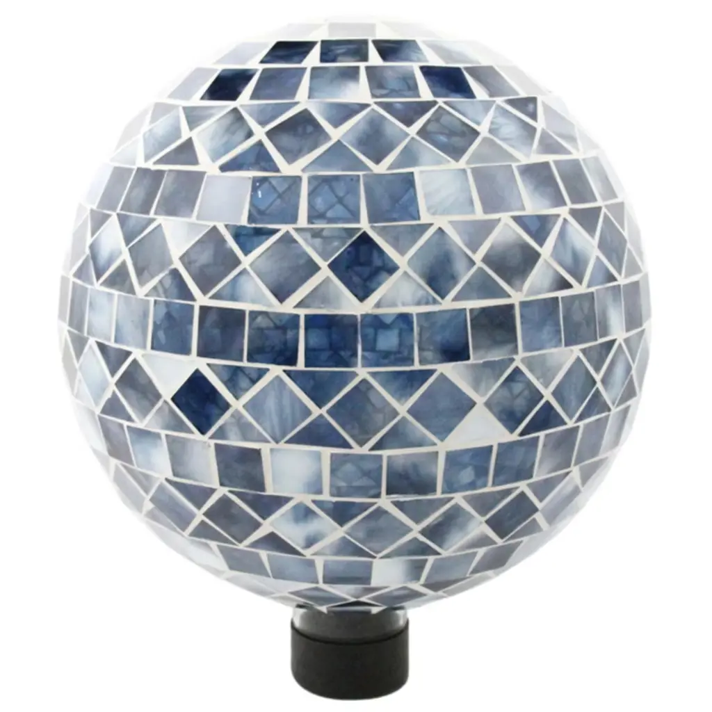 Bring vibrant elegance to your space with this handcrafted 10-inch mosaic glass gazing globe, featuring a stunning blue and green mermaid scale tile design that beautifully reflects light in every direction. Made from premium-quality glass, it offers vibrant color, intricate detail, and lasting brilliance. Versatile in display, it can be hung from a porch, patio, or garden hook using the included chain, or placed in a stand, flower bed, or tabletop arrangement. A stemmed bottom with a protective rubber cap ensures a secure fit in most standard gazing ball stands (stand not included). Ideal for gardens, balconies, courtyards, entryways, or indoor décor, this artistic globe adds a whimsical and elegant touch to any setting. It also makes a thoughtful gift for garden enthusiasts, nature lovers, and décor collectors, perfect for birthdays, housewarmings, Mother's Day, and more.