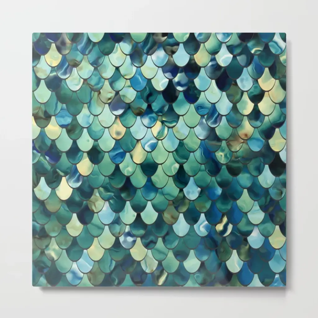 Very Cool Stuff Mosaic Glass Gazing Globe With Hanging Chain, Mermaid Scale Tile, 10in