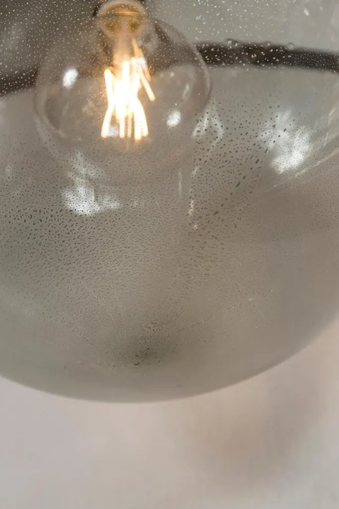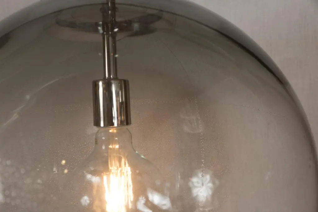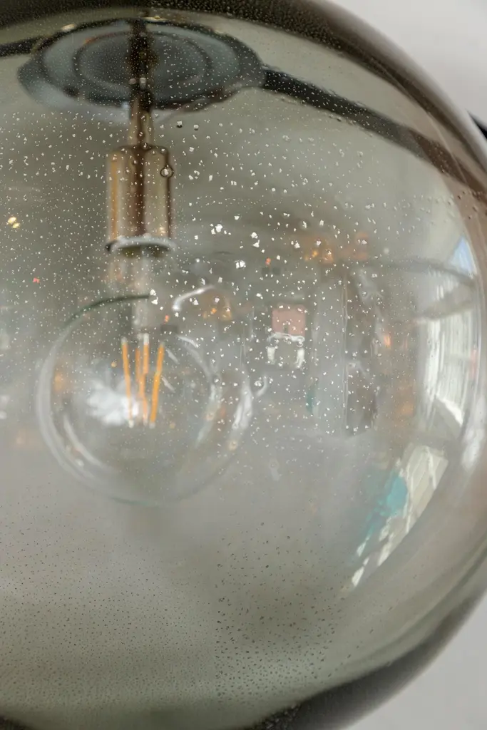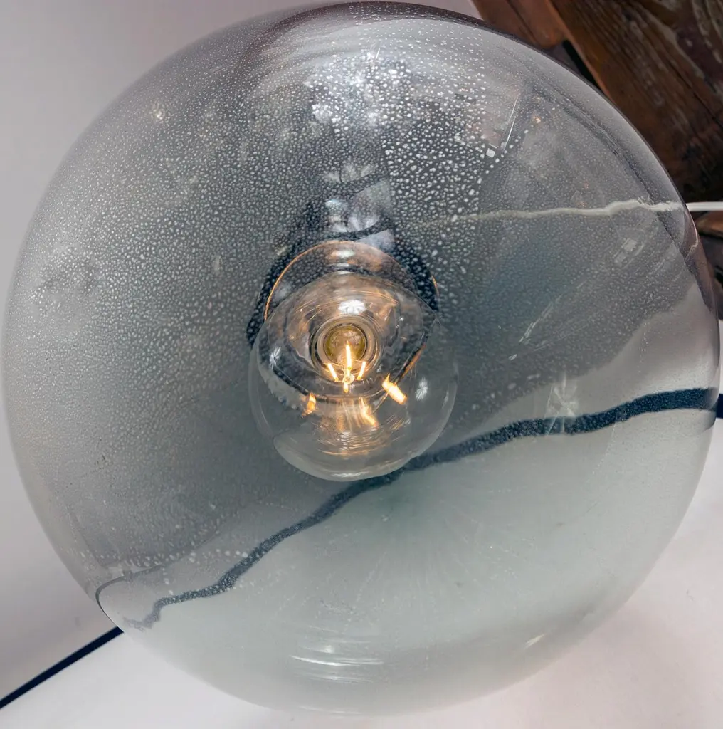 Very Large Pair Italian Murano Glass Blown Grey Globe Ceiling Fixtures, Ul