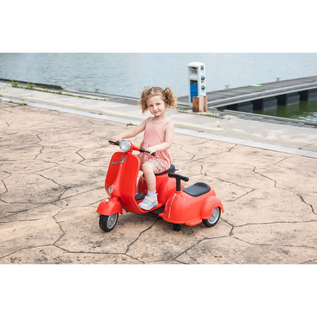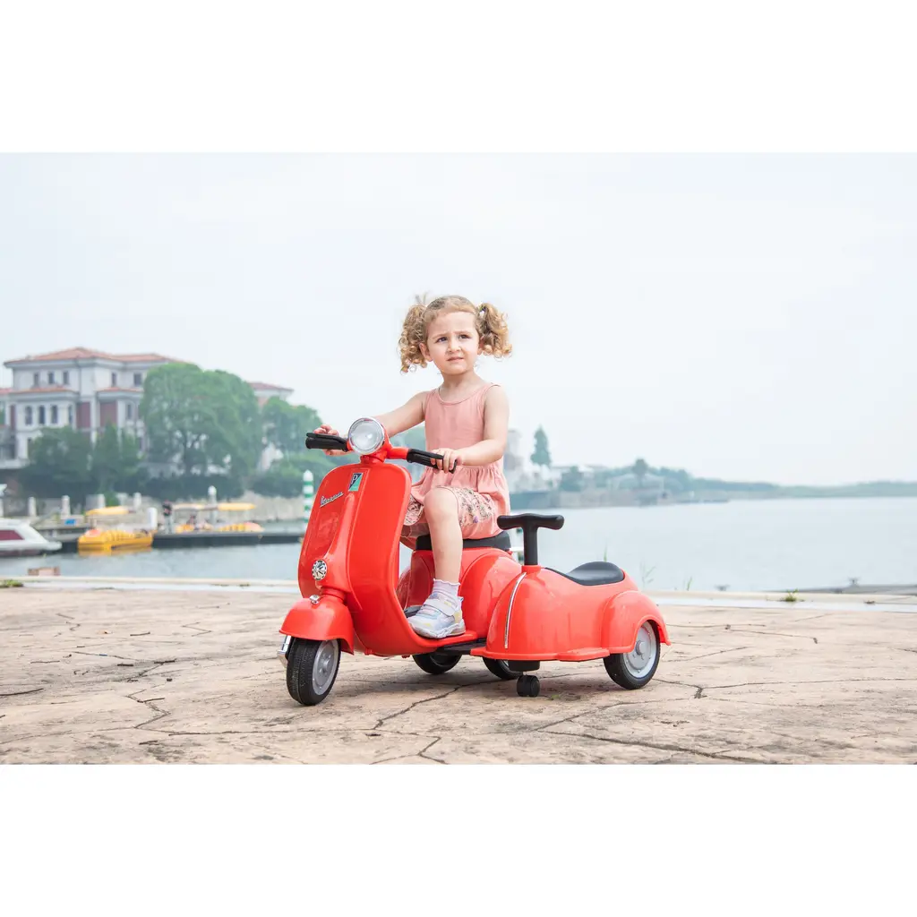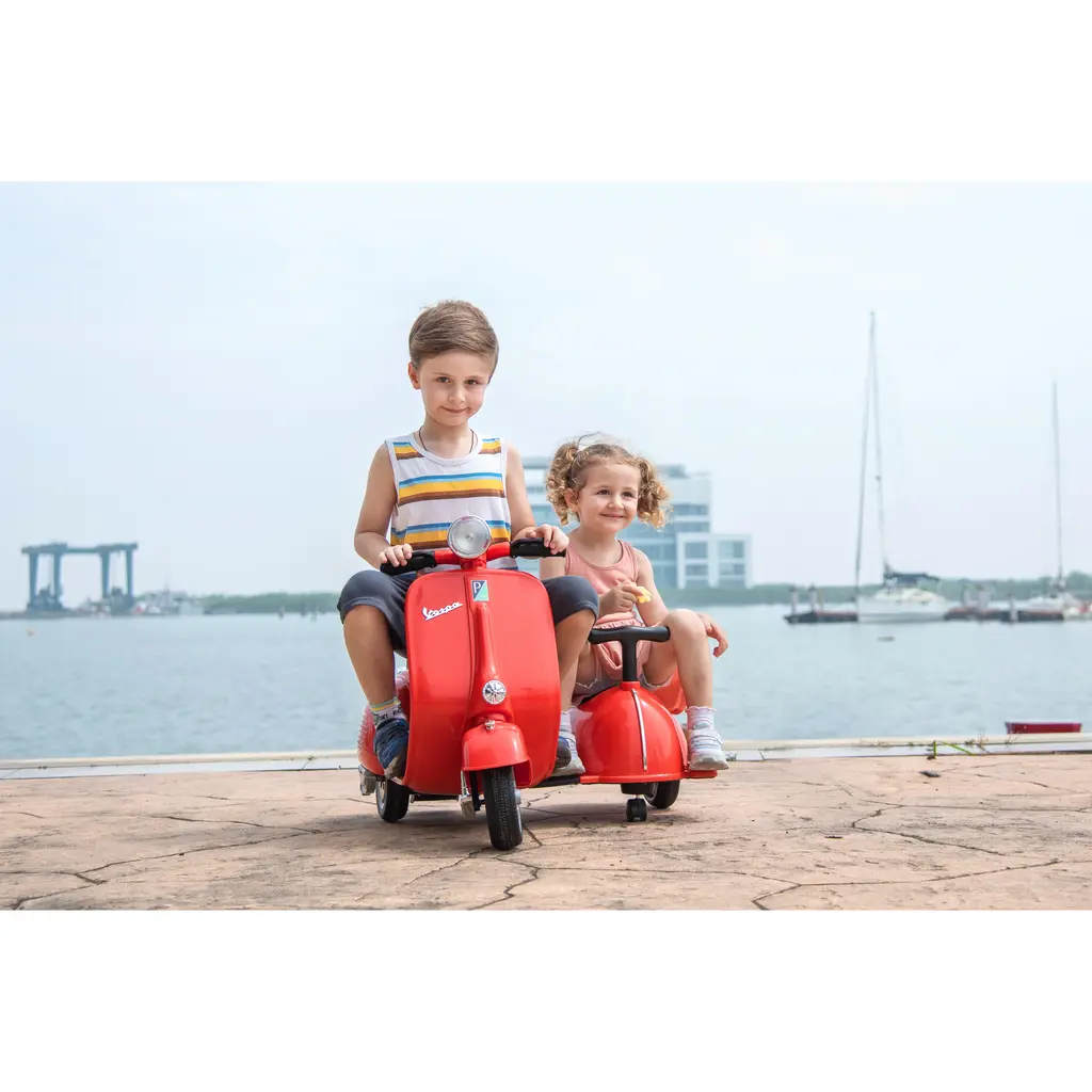 Vespa 6V Ride-On Motorcycle With Sidecar, Stylish Kids Electric Scooter Toy For Siblings, Safe And Fun For Boys And Girls - Red