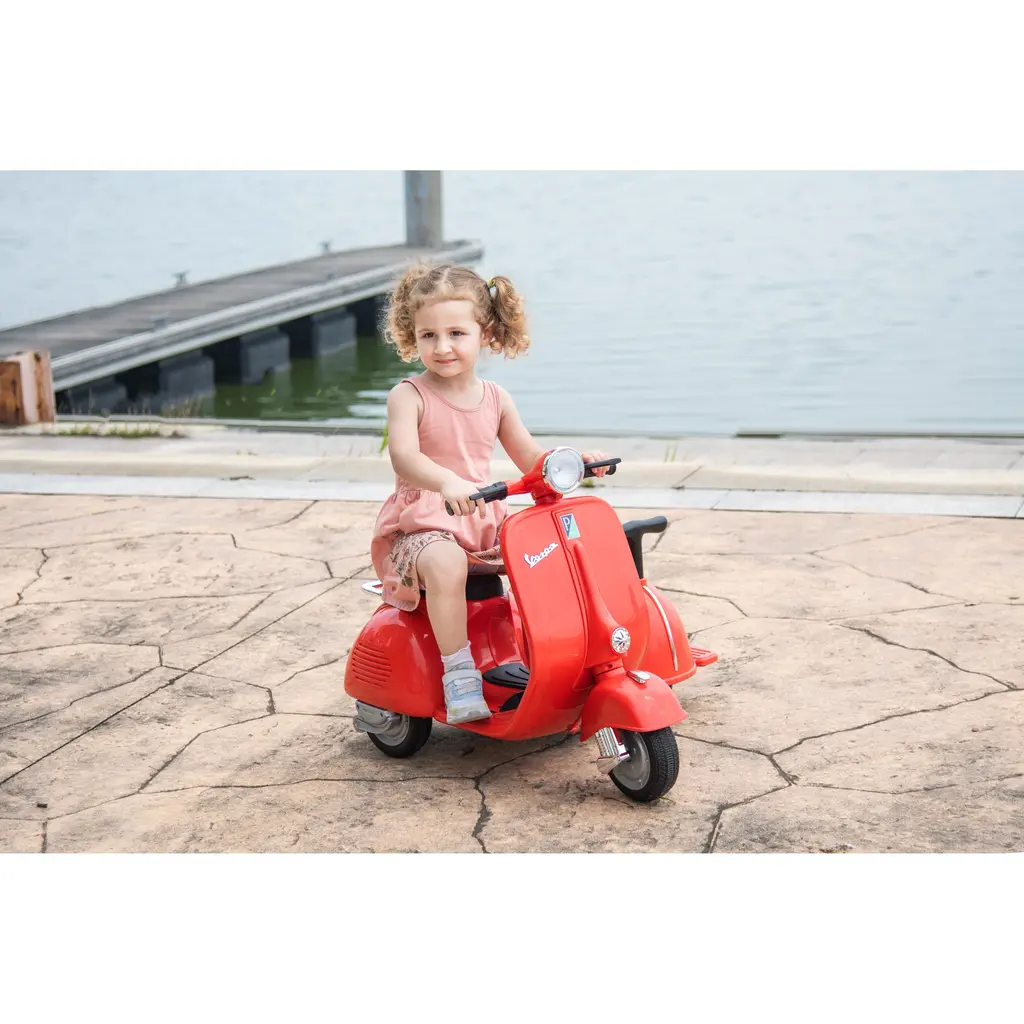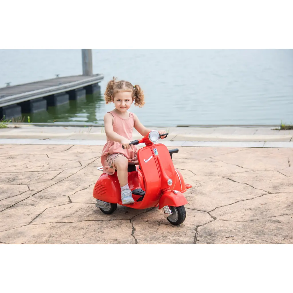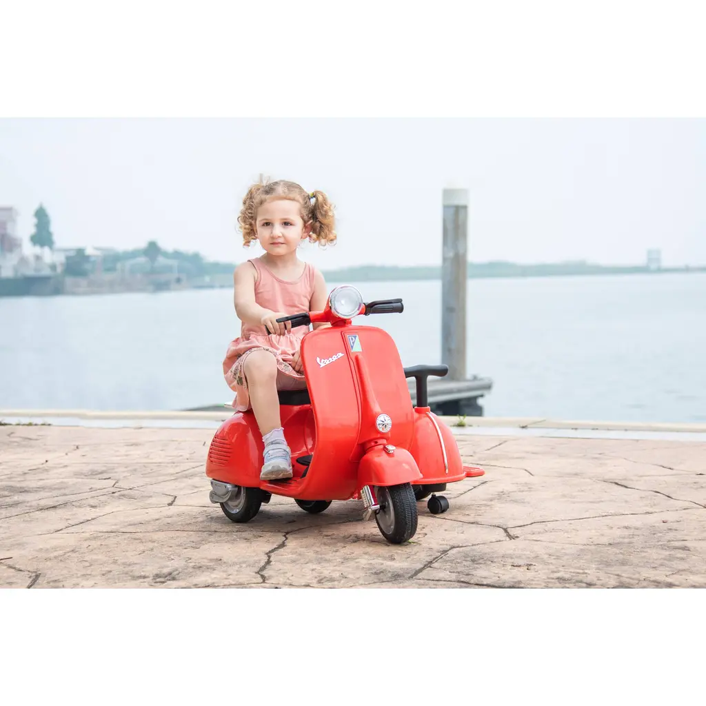 Vespa 6V Ride-On Motorcycle With Sidecar, Stylish Kids Electric Scooter Toy For Siblings, Safe And Fun For Boys And Girls - Red