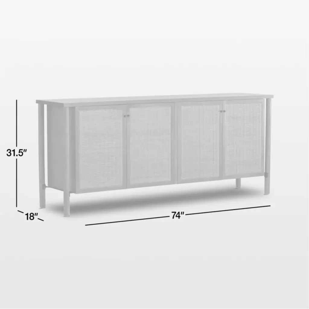 Veta satisfies our love of cane and wood with clean lines and lots of storage. Crafted of solid mango wood from trees no longer producing fruit, the credenza features a suite of cabinet doors inset with panels of basket-woven cane. Dowel legs set off from the casing give the sideboard a floating appearance while highlighting the wood grain on solid side panels. Inside, two adjustable shelves provide plenty of space for storing dining or living room essentials.