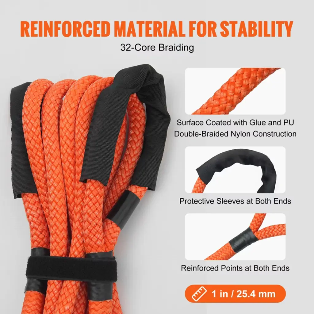 Vevor 1" X 20' Kinetic Recovery Tow Rope 38,000 Lbs, Heavy-duty Off Road Snatch Strap, Extreme Duty 30% Elasticity Energy Snatch Strap