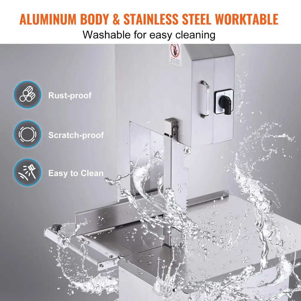 Vevor 1500w & 2200w Meat Bandsaw Stainless Vertical 19.3x15" & 24.4x20.5" Workbeach 6 Blades For Pork - 2200w