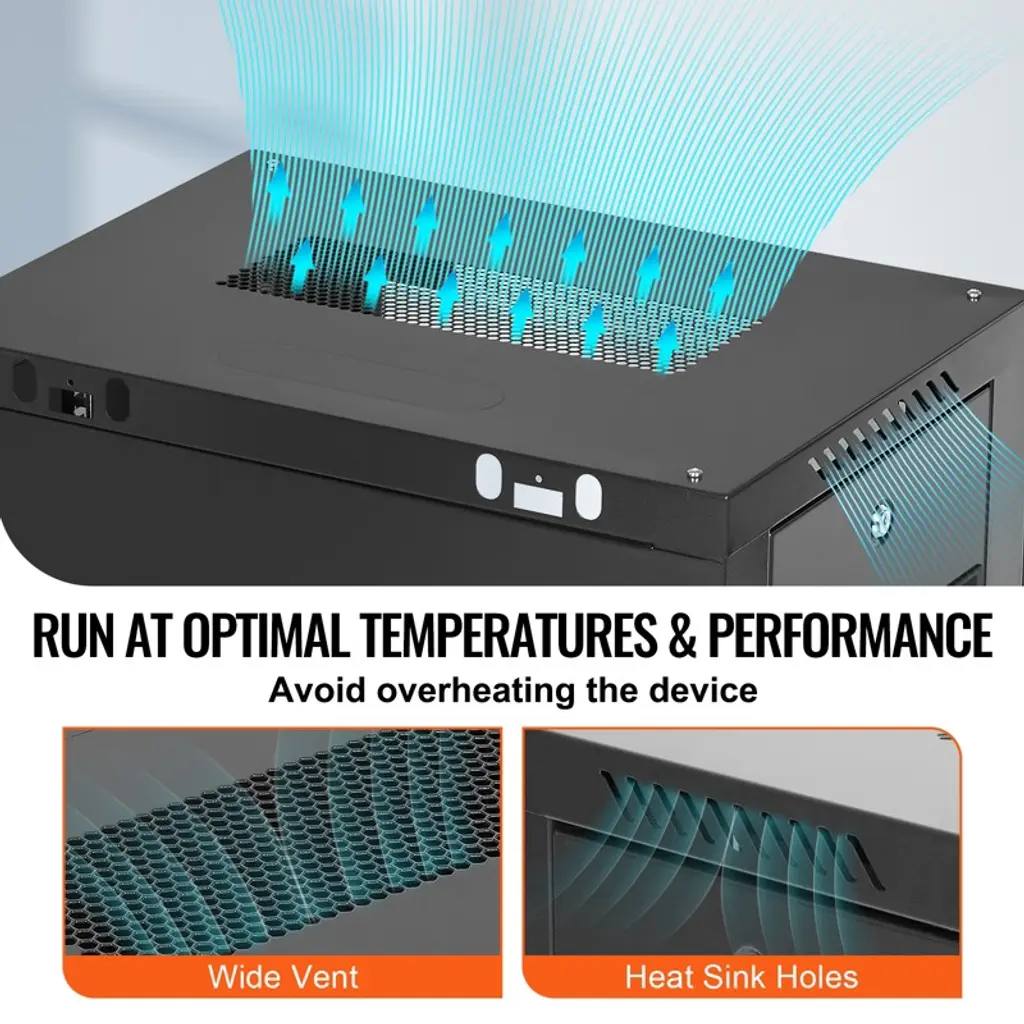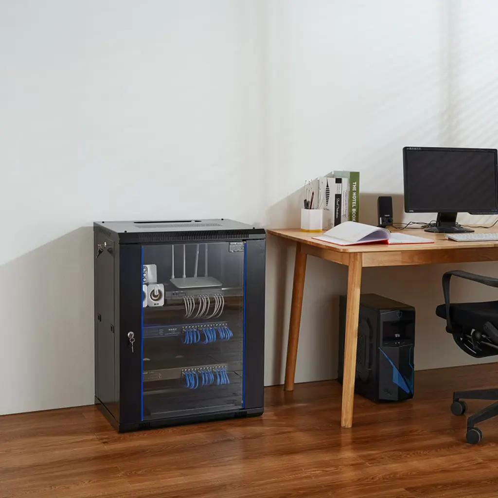 Feature: Save Space, Stay Organized: Maximize your limited space with our versatile network cabinet. With a maximum depth of 18 inches, it is perfect for retail environments, classrooms, offices, and any place where space is at a premium. It’s designed to keep your setup organized and efficient, making it ideal for tight spots where every inch counts. Outstanding Heat Dissipation: Keep your IT equipment cool and running smoothly with our network cabinet! Equipped with strategically placed ventilation vents and top-to-bottom cooling holes, our network cabinet ensures optimal airflow to avoid overheating. Tough and Ready for Anything: Built with a solid welded frame, our network cabinet is designed for durability and long-lasting performance. With a wall-mount load capacity of 200 lbs and a free-standing load capacity of 500 lbs, it can handle multiple devices with ease. Security is Our Priority: Keep your gear secure and sound with our lockable glass door! Designed for offices and public spaces, it effectively safeguards your gear from unauthorized access, ensuring your valuable equipment and data stay secure. Easy Installation Made Effortless: Enjoy a hassle-free setup with our fully adjustable square-hole mounting rails. The top, bottom, and rear panels come with multiple wiring holes, making it a breeze to organize and route your cables neatly. Package Content 1 x 15U Multifunctional Server Cabinet