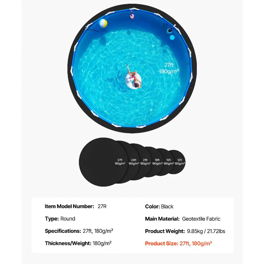 Vevor 27ft Round Pool Liner Pad, Pool Liner Pad For Above Ground Swimming Pools, Extra-thick Pool Mat, Prevents Punctures, Black