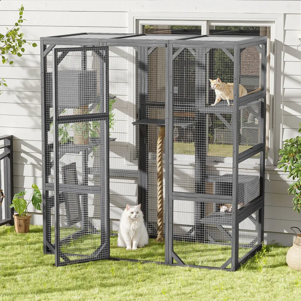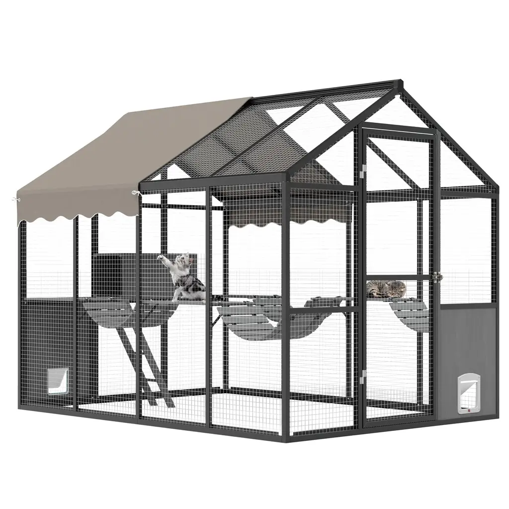 Vevor 4 & 7 Tier Large Catio Detachable Metal Enclosure 35.4x23.6x51" & 71.2x34.6x66.5" With Platforms & Resting Area - 7-Tier - Grey