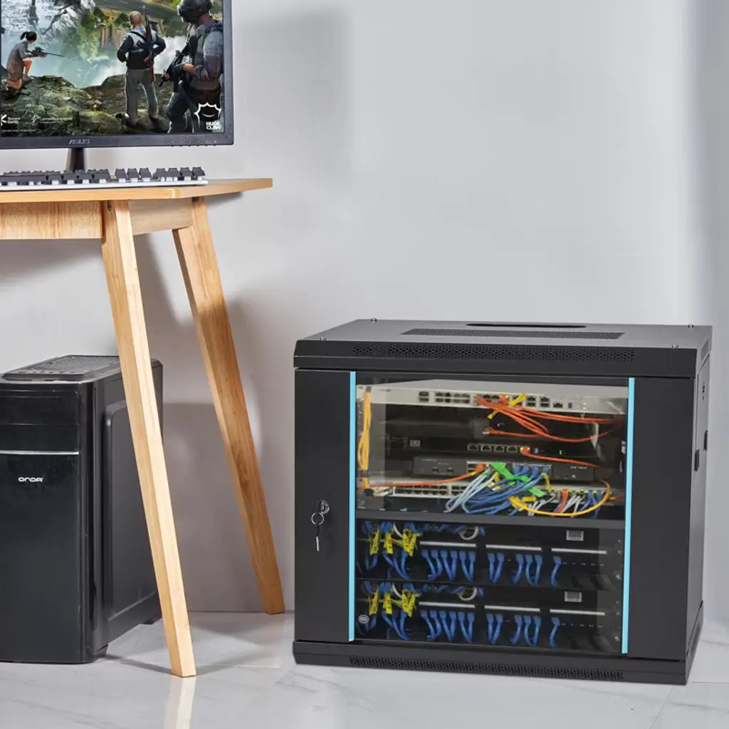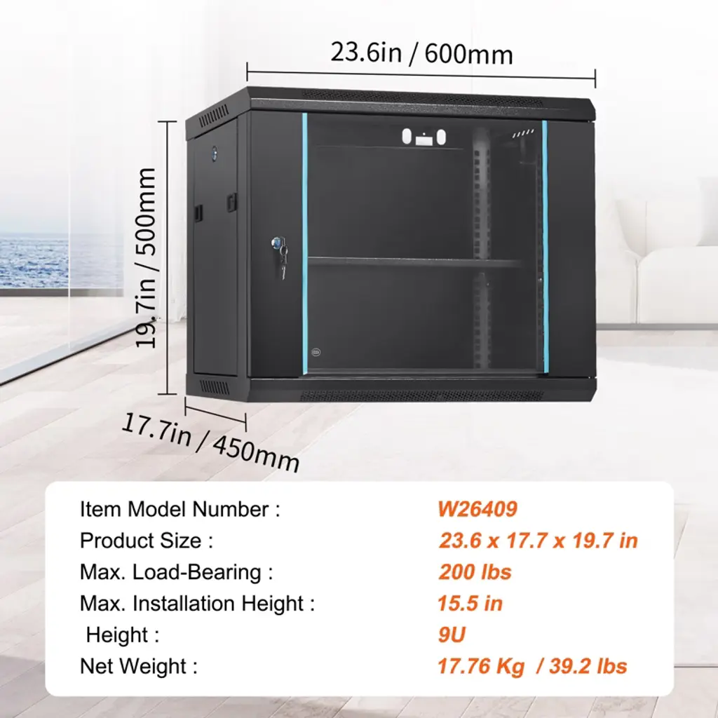 Feature: Space Saving: Maximum depth: 15.5". Use the wall mount network cabinet to maximize available space for retail locations, classrooms, back offices, network cabinets, and other locations where space is limited. Fast Heat Dissipation: The server cabinet is designed with vents to optimize airflow and avoid critical IT equipment overheating. Heat sink holes in the top, bottom, and rear panels are more conducive to heat dissipation. Sturdy Construction: Robust welded frame construction for durability and long service life. With 100 lbs wall-mounted load capacity and 200 lbs ground-mounted load capacity, you can place multiple devices in the server rack cabinet as needed. High Security: The locked glass door ensures the security of data and equipment. Wall mount rack enclosure server cabinet is ideal for use in public places such as offices, effectively protecting the security of your devices. Hassle-free Installation: Fully adjustable square-hole mounting rails of the wall mount server cabinet facilitate device installation. Wiring holes on the top, bottom, and rear panels provide you with easy cable routing. Package Content 1 x Network Server Cabinet 1 x Pallet 1 x Grounding Wire 40 x M5*10 Cross Head Screws 4 x M10*50 Expansion Screws 15 x M6*12 Cage Nuts 1 x User Manual