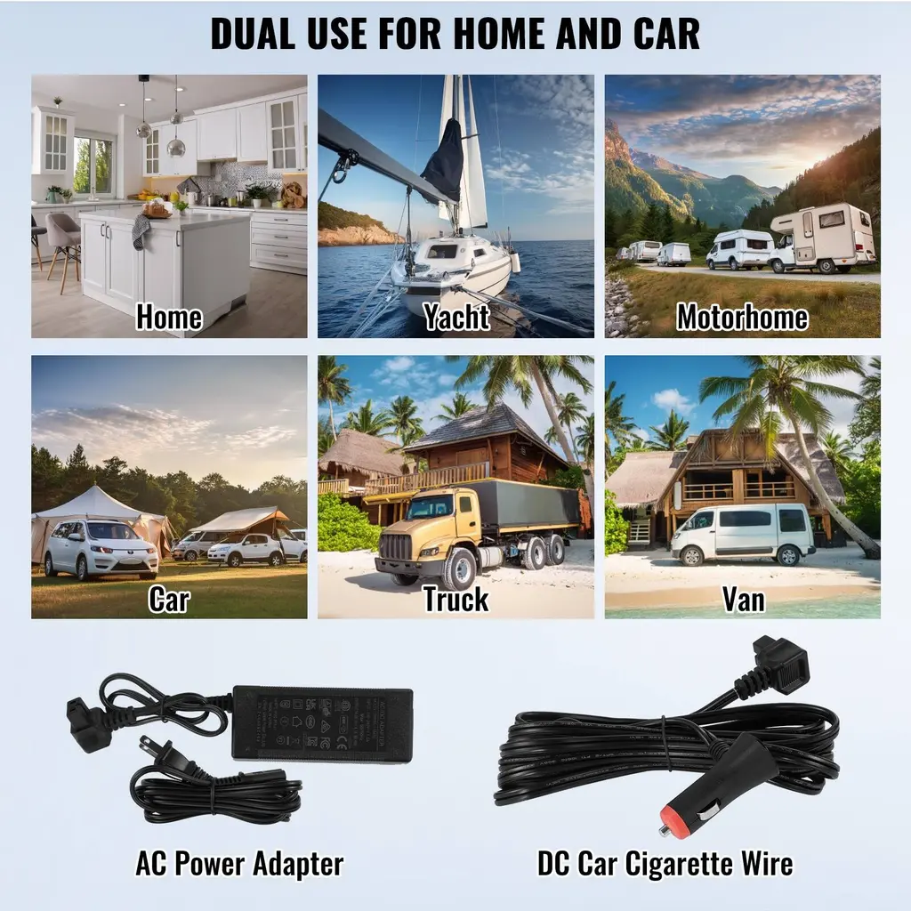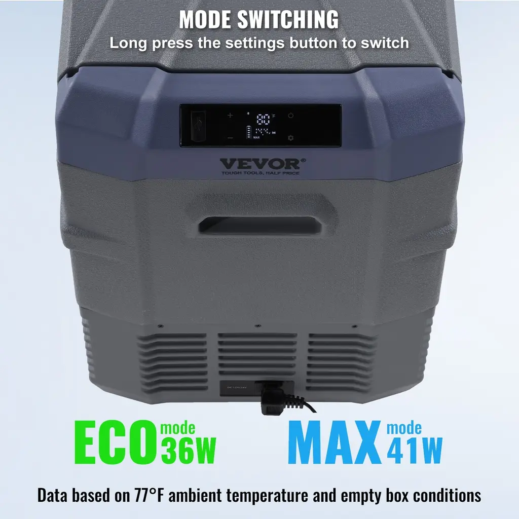 Powerful Capacity: The portable refrigerator freezer has a single compartment capacity of 70 L / 37 L / 9 L / 12 L / 45 L / 15 L / 30 L / 25 L. For 70 L option: This robust RV fridge can hold 96 cans of 330ml cola or 88 bottles of 550ml water or 29 bottles of 750ml red wine, accommodating seafood, snacks, meats, and beverages, meeting the needs of short trips such as travel, boating, and camping. For 37 L option: This robust RV fridge can hold 63 cans of 330ml cola or 48 bottles of 550ml water or 16 bottles of 750ml red wine For 9 L option: This robust RV fridge can hold 12 cans of 330ml cola or 11 bottles of 550ml water. For 12 L option: This robust RV fridge can hold 16 cans of 330ml cola or 15 bottles of 550ml water. For 45 L option:This robust RV fridge can hold 79 cans of 330ml cola or 58 bottles of 550ml water or 18 bottles of 750ml red wine. For 15 L option: This robust RV fridge can hold 17 cans of 330ml cola or 18 bottles of 550ml water or 7 bottles of 750ml red wine. For 30 L option: This robust RV fridge can hold 40 cans of 330ml cola or 32 bottles of 550ml water or 7 bottles of 750ml red wine. For 25 L option: This robust RV fridge can hold 48 cans of 330ml cola or 20 bottles of 550ml water or 12 bottles of 750ml red wine. 2H(for 70 L / 37 L /45 L / 30 L option) / 1H(for 9 L option) /1.5H(for 12 L / 15 L / 25 L option) Rapid Cooling: This 12V car fridge uses compressor cooling technology, reaching -20°C / -4°F shutdown point in approximately 2H / 1H / 1.5H at 77°F ambient temperature. It cools quickly and operates normally even when tilted up to 45 degrees, making it your companion for outdoor camping or work, keeping your food fresh. No need for ice cubes, preventing food spoilage and saving money and space. LED Screen & Bluetooth Control: The LED control panel allows you to directly view the operation status of the car fridge and adjust the temperature range at any time. You can set any temperature between -20°C to 20°C / -4°F to 68°F on the panel. The electric cooler also features Bluetooth mode, connecting to a mobile app for remote control. Quiet & Energy Efficient: The fridge operates with noise ≤ 45dB, ensuring you sleep well after long drives. You can also choose between ECO and Max modes via the LCD touchscreen. In ECO energy-saving mode, the operating power of this portable fridge is less than 38W(70L option) / 31W(37 L / 9 L / 12 L / 15L option) /36W(45L option) / 26W(30L option). Even when running in MAX mode (43W for 70L option; 35W for 37 L / 9 L / 12 L /15L option; 41W for 45L option; 30W for 30L option), its intelligent circulation consumes less than 1 kWh/day. Dual Use for Home/Car: The car fridge comes with 110/240V AC and 12/24V DC adapters, allowing it to be used at home, on yachts, RVs, cars, trucks, and vans. other options Package Content 1 x Portable Car Refrigerator1 x Adapter 1 x AC Power Cord 1 x Cigarette Lighter Cord 1 x User Manual 25 L option Package Content 1 x Portable Car Refrigerator 1 x Adapter 1 x Cigarette Lighter Cord 1 x User Manual