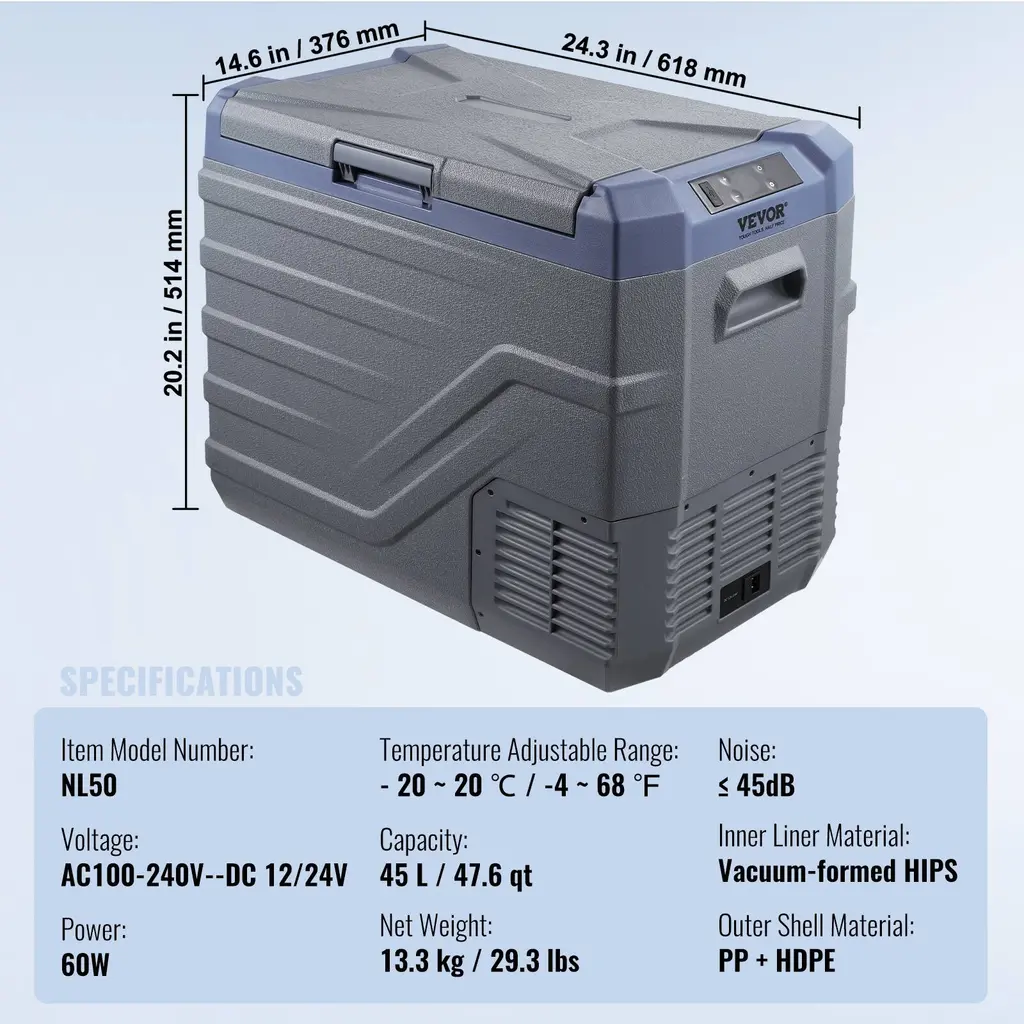 Vevor Car Refrigerator, 12 Volt Car Refrigerator Fridge Ac Compressor Cooler For Outdoor, Camping, Rv - 45 L