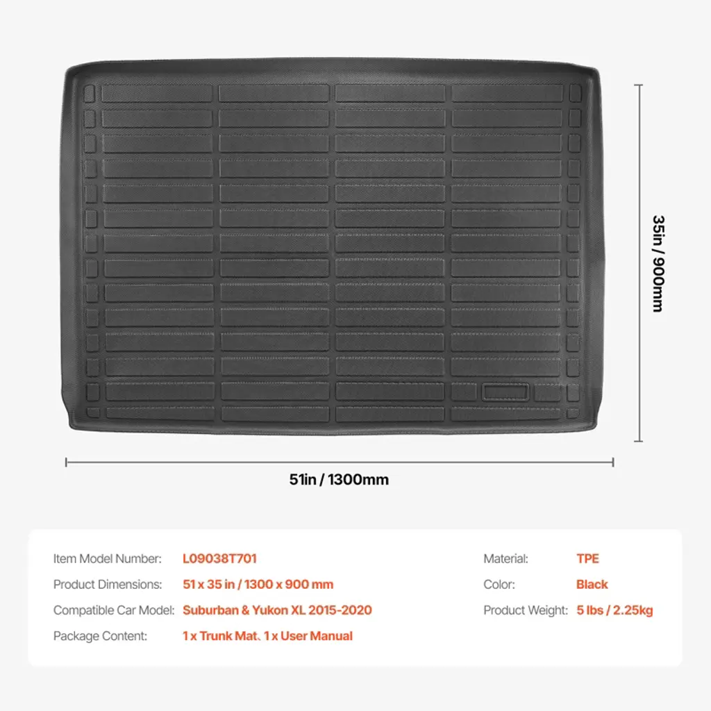 Vevor Cargo Mat Compatible With Chevrolet Suburban & Gmc Yukon Xl 2015-2020, Fit Trunk Mat For Suvs, Tpe Trunk Protector Replacement, Black (1pcs)