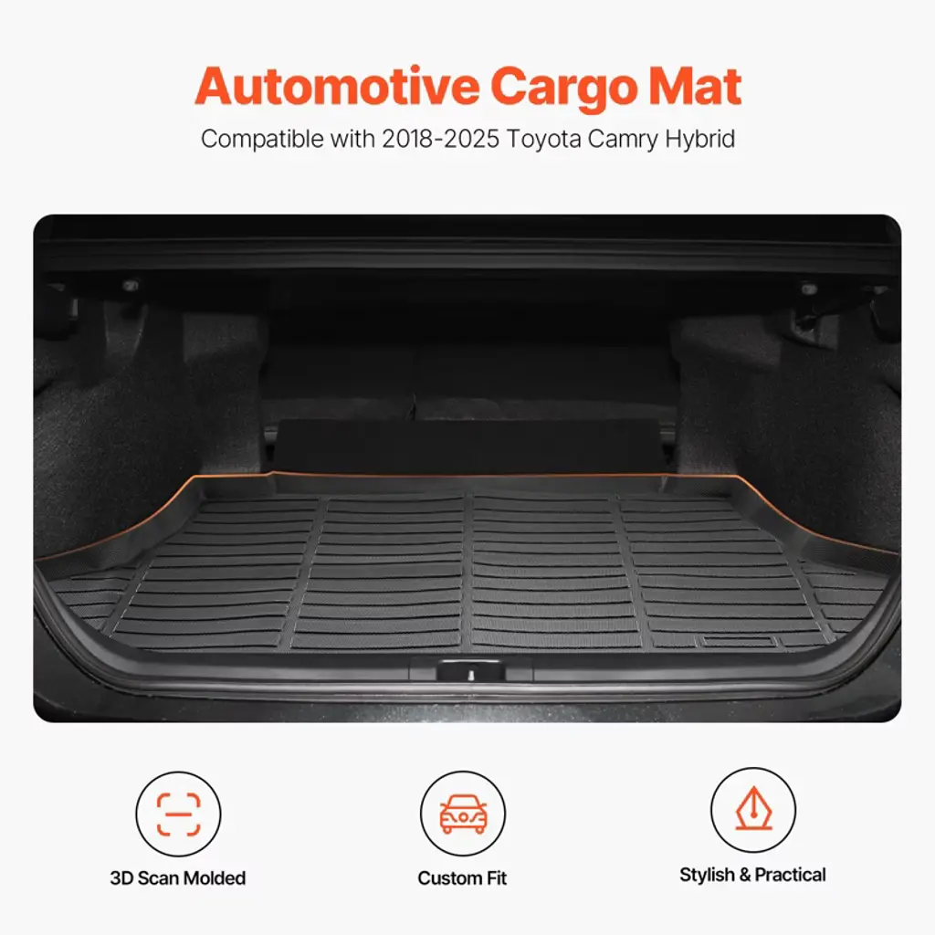 Vevor Cargo Mat Compatible With Toyota Camry Hybrid 2018-2025, Precise Fit Odorless Durable Trunk Mat, Tpe Trunk Protector Replacement, 1Pcs, Black