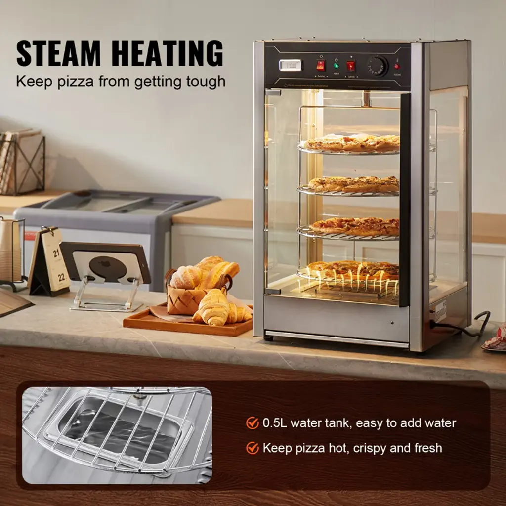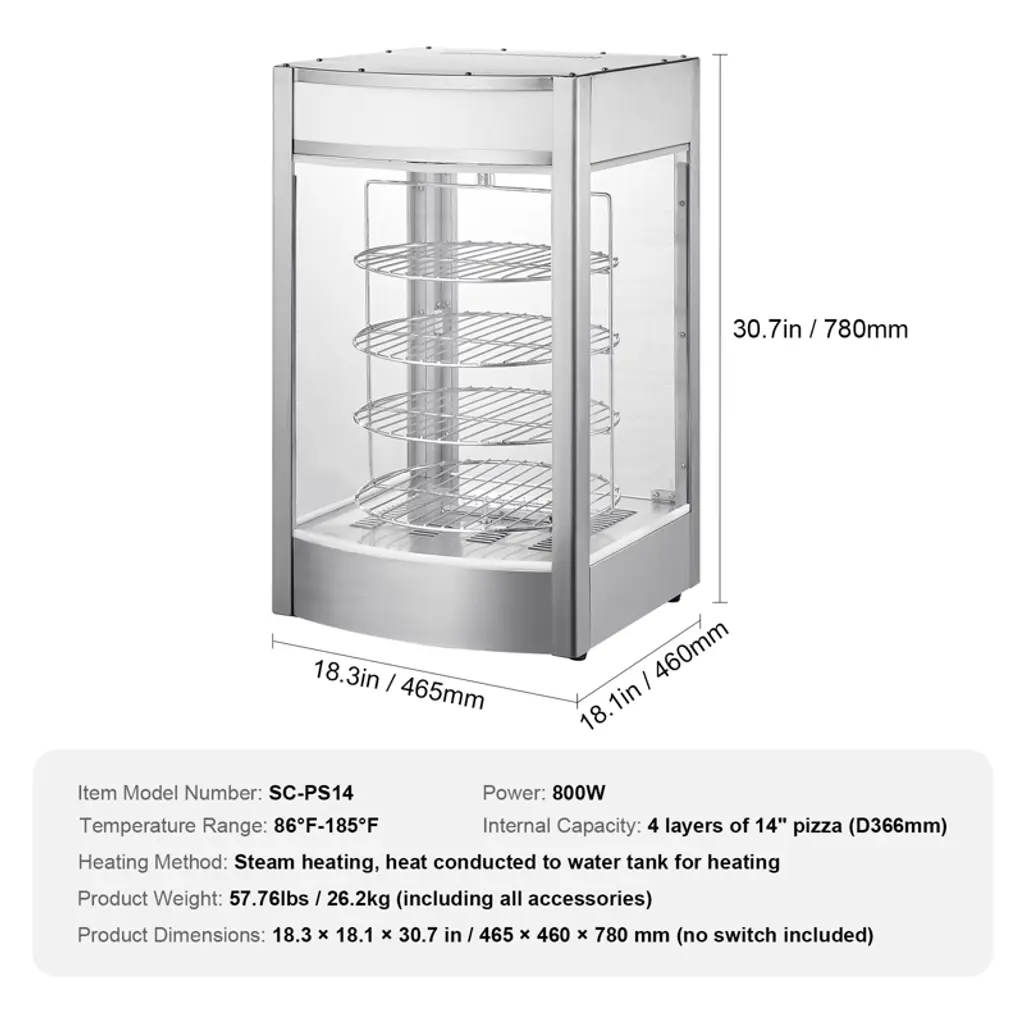 Vevor Commercial Food Warmer Display For 14" Pizza, 4-tier Pizza Warmer With Rotary Steam Heating, 86°f~185°f Temperature Control And Temp Display