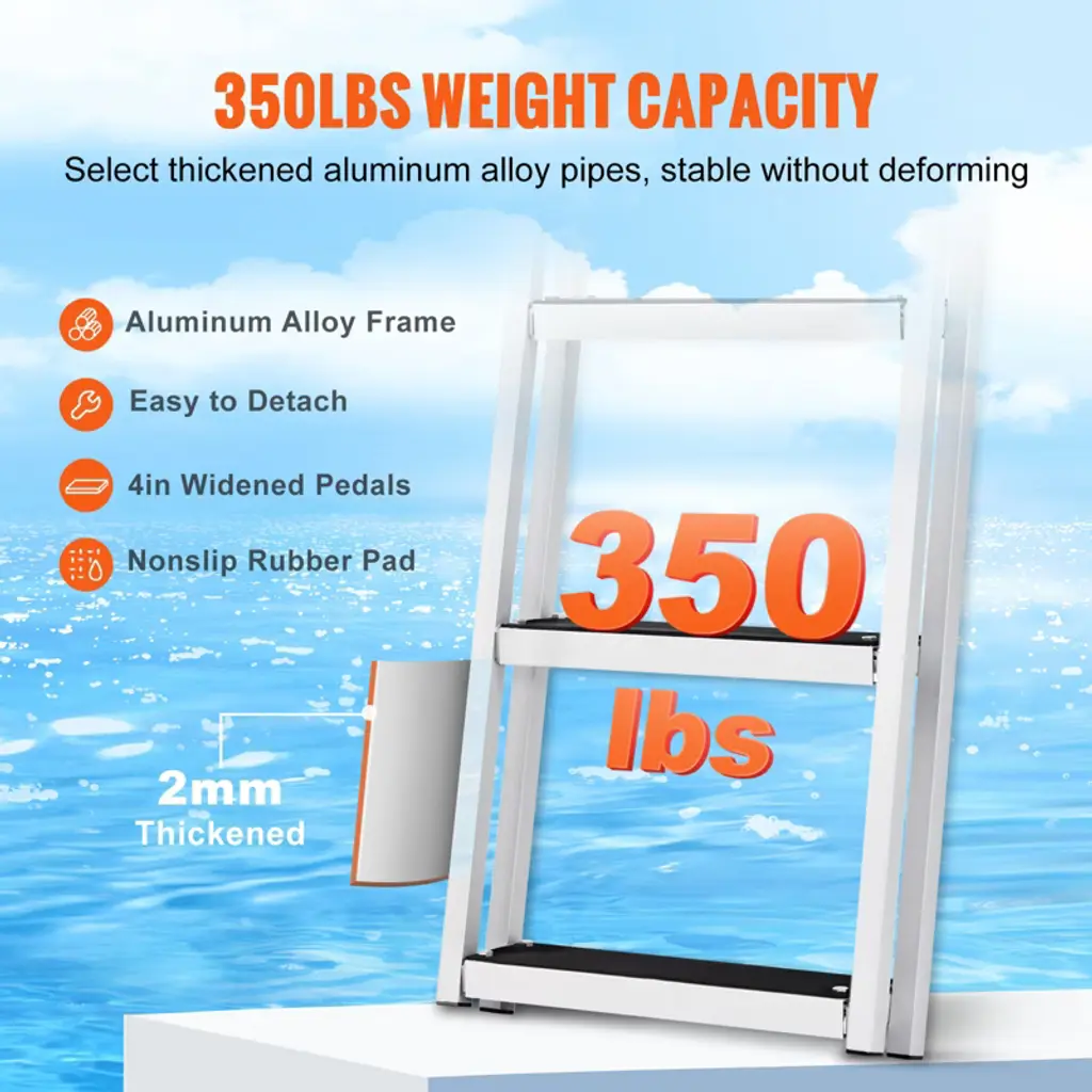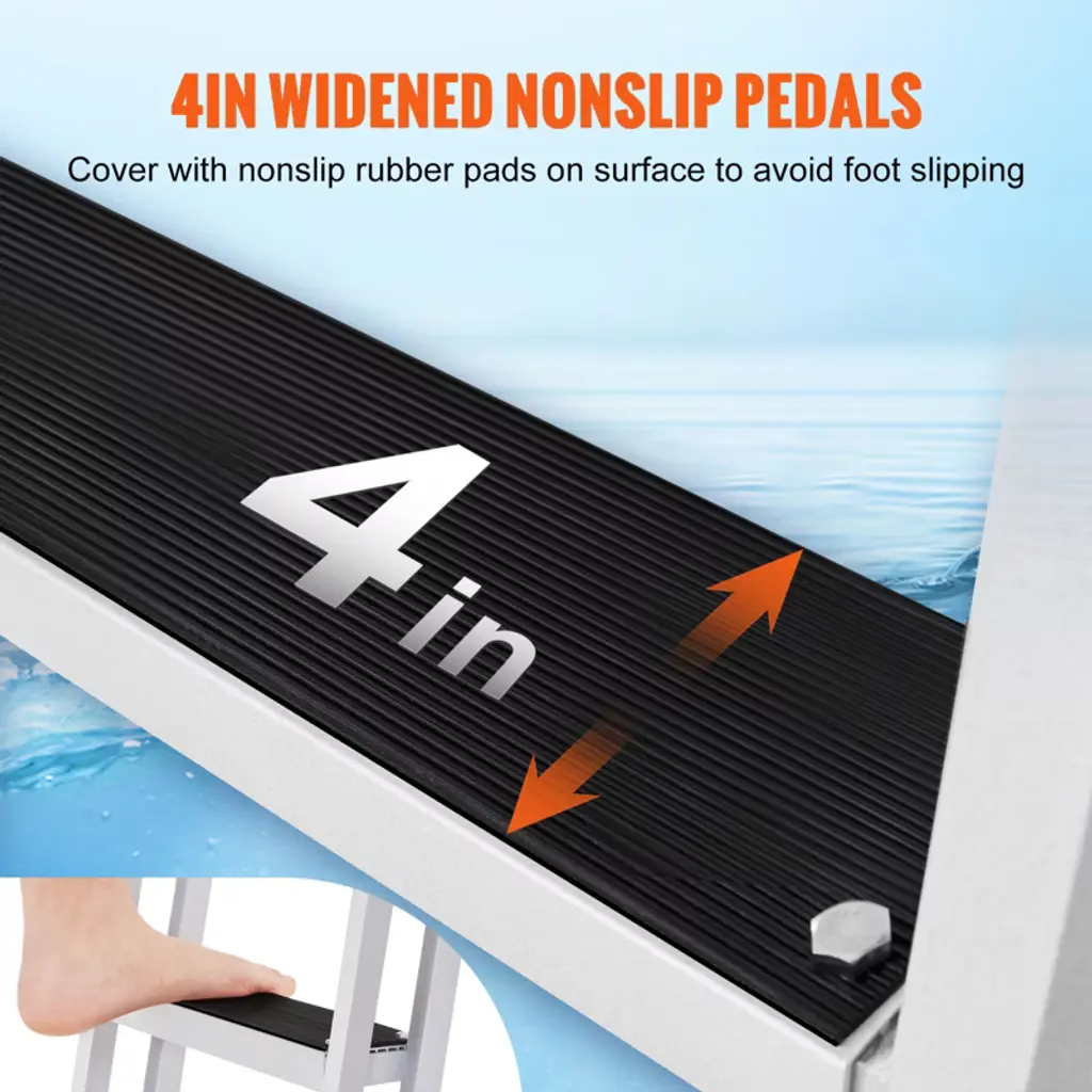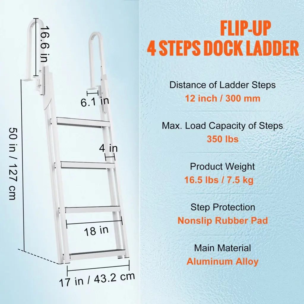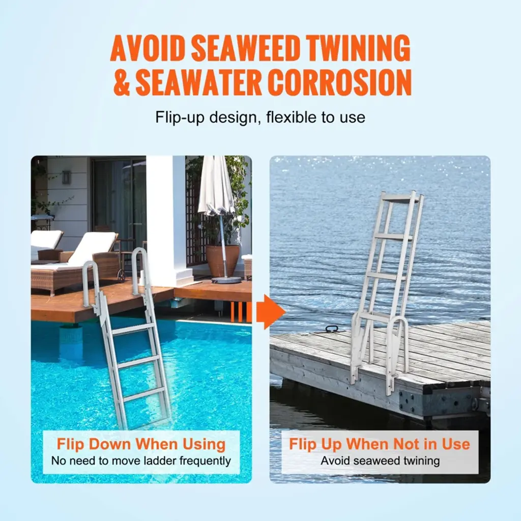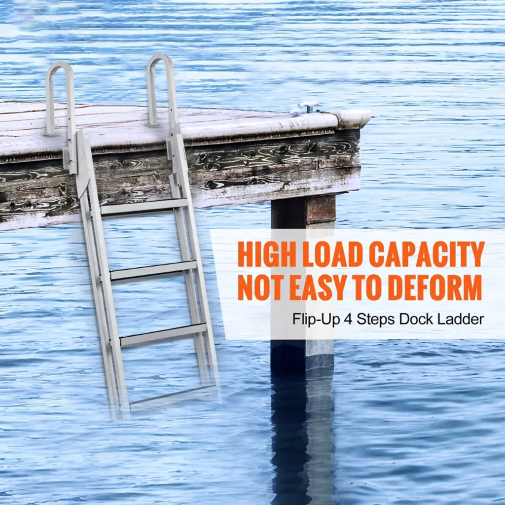 Vevor Dock Ladder Flip Up 4 Steps, 350lbs Load Capacity, Aluminum Pontoon Boat Ladder With 4" Wide Step & Nonslip Rubber Mat,swimm Step Ladder