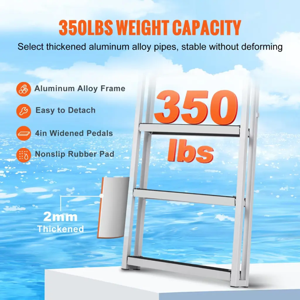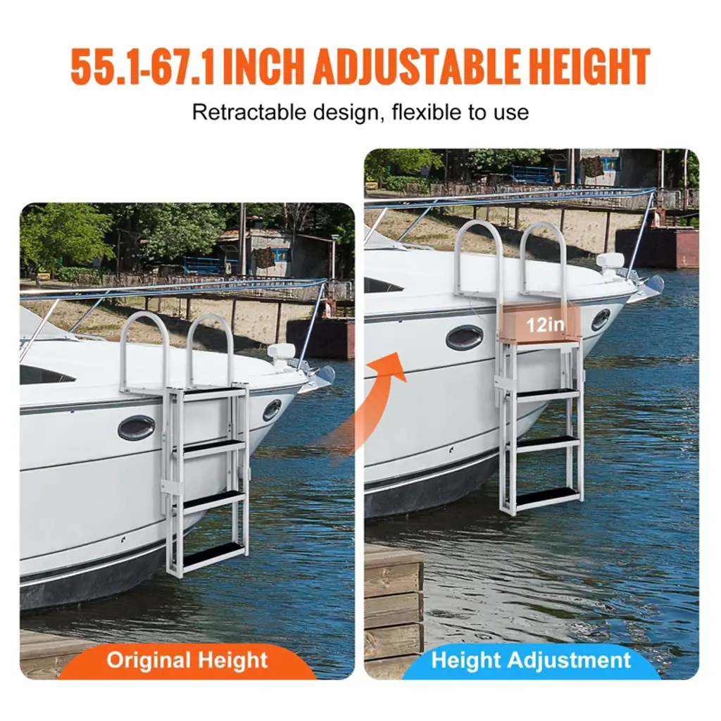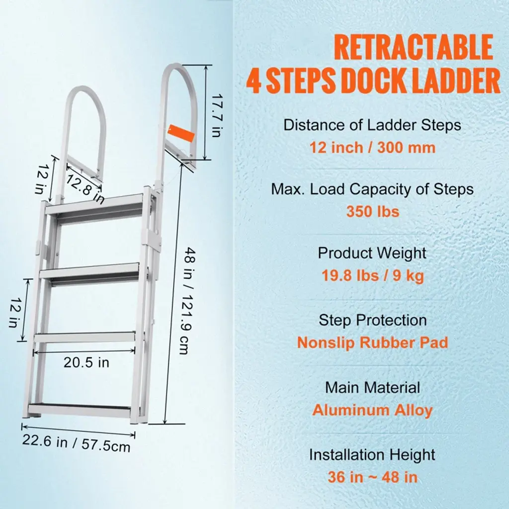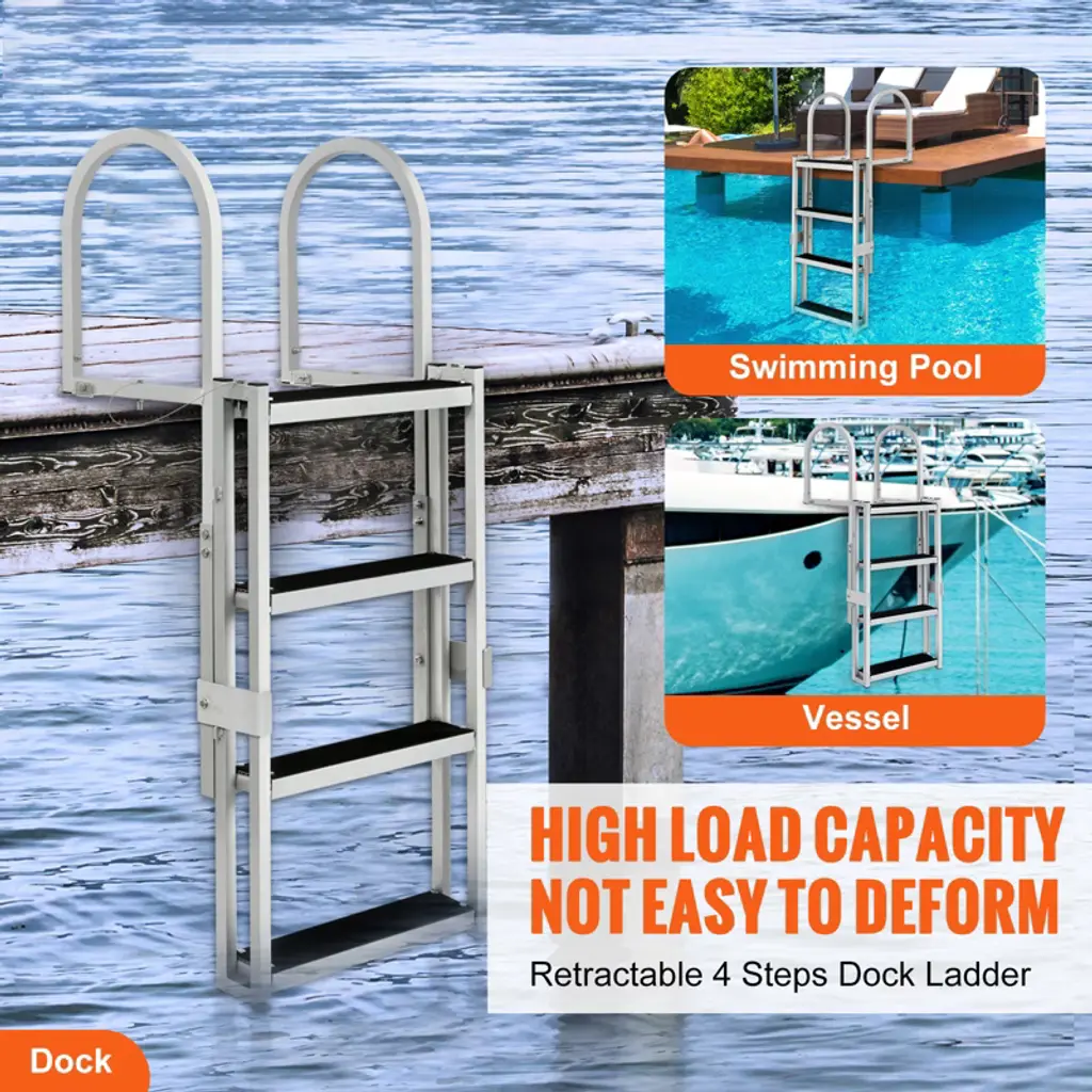 Vevor Dock Ladder, Retractable 4 Steps, 350 Lbs Load Capacity, Aluminum Alloy Pontoon Boat Ladder With 55.1''-67.1'' Adjustable Height, 4'' Wide Step